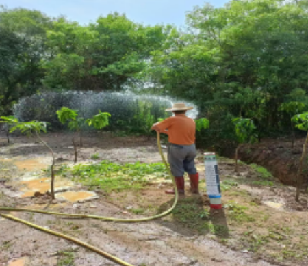 垃圾清理完成后,參與人員迅速投入植樹活動。根據山林生態(tài)特點,科學規(guī)劃種植區(qū)域,選取適宜本地生長的芒果樹 48 株。在指導下,大家分工明確,揮鍬鏟土、扶苗填坑、澆水固根,經過數小時努力,一排排新苗整齊挺立,為山林增添生機與綠意。