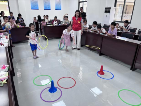 活動中,志愿者通過趣味問答、紅色故事分享等形式,引導孩子們學習黨史知識,厚植愛國情懷。手工制作環(huán)節(jié),小朋友們在志愿者的指導下認真制作花朵。他們拿起彩紙,折折疊疊,再用膠水細心粘貼,不一會兒,一朵朵色彩鮮艷的紙花就在小手中綻放??粗约旱膭趧映晒?,孩子們的臉上洋溢著自豪的笑容。 隨后開始投圈圈活動,現場充滿了歡聲笑語,孩子們在活動中收獲了快樂,度過了一個難忘的六一兒童節(jié)。