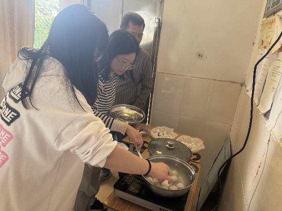師生們共同品嘗勞動(dòng)成果。一碗碗熱氣騰騰的餃子與湯圓被端上餐桌,學(xué)生們吃得格外香甜,活動(dòng)現(xiàn)場(chǎng)洋溢著歡聲笑語(yǔ)。