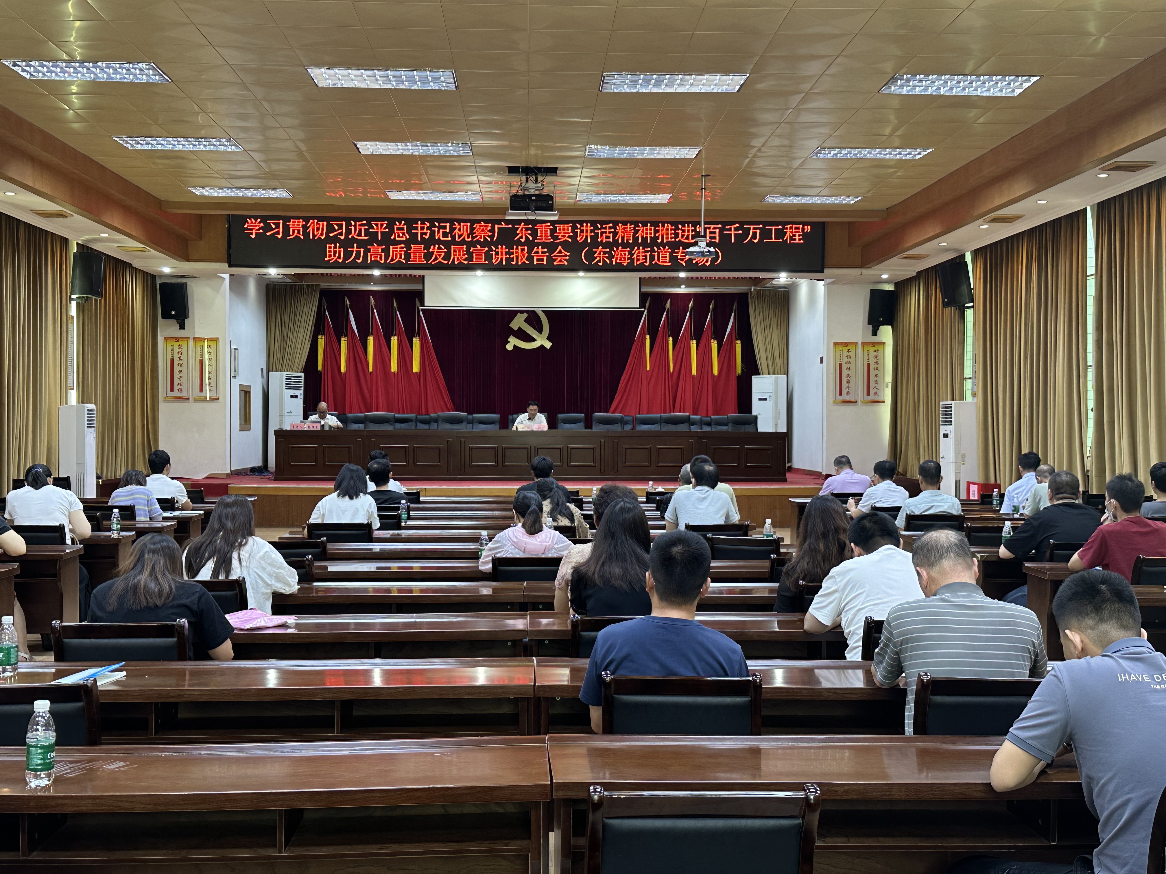 7月3日,陸豐市委宣講團(tuán)在我街道開展“學(xué)習(xí)貫徹習(xí)近平總書記視察廣東重要講話精神推進(jìn)“百千萬工程”助力高質(zhì)量發(fā)展宣講報(bào)告會,深入貫徹落實(shí)黨的二十大精神,深入學(xué)習(xí)貫徹習(xí)近平總書記視察廣東重要講話、重要指示精神,全面貫徹落實(shí)陸豐市委、市政府關(guān)于推進(jìn)“百縣千鎮(zhèn)萬村高質(zhì)量發(fā)展工程”的部署,激勵(lì)廣大干部群眾投身“百千萬工程”。東海街道黨工委副書記胡炳楚主持會議,市委宣講團(tuán)成員、市委黨校張鏡東主講會議,街道黨政班子領(lǐng)導(dǎo)成員、街道各黨支部書記、街道機(jī)關(guān)黨員干部、村(社區(qū))黨員干部、中小學(xué)校長及群眾代表共106人參加報(bào)告會。