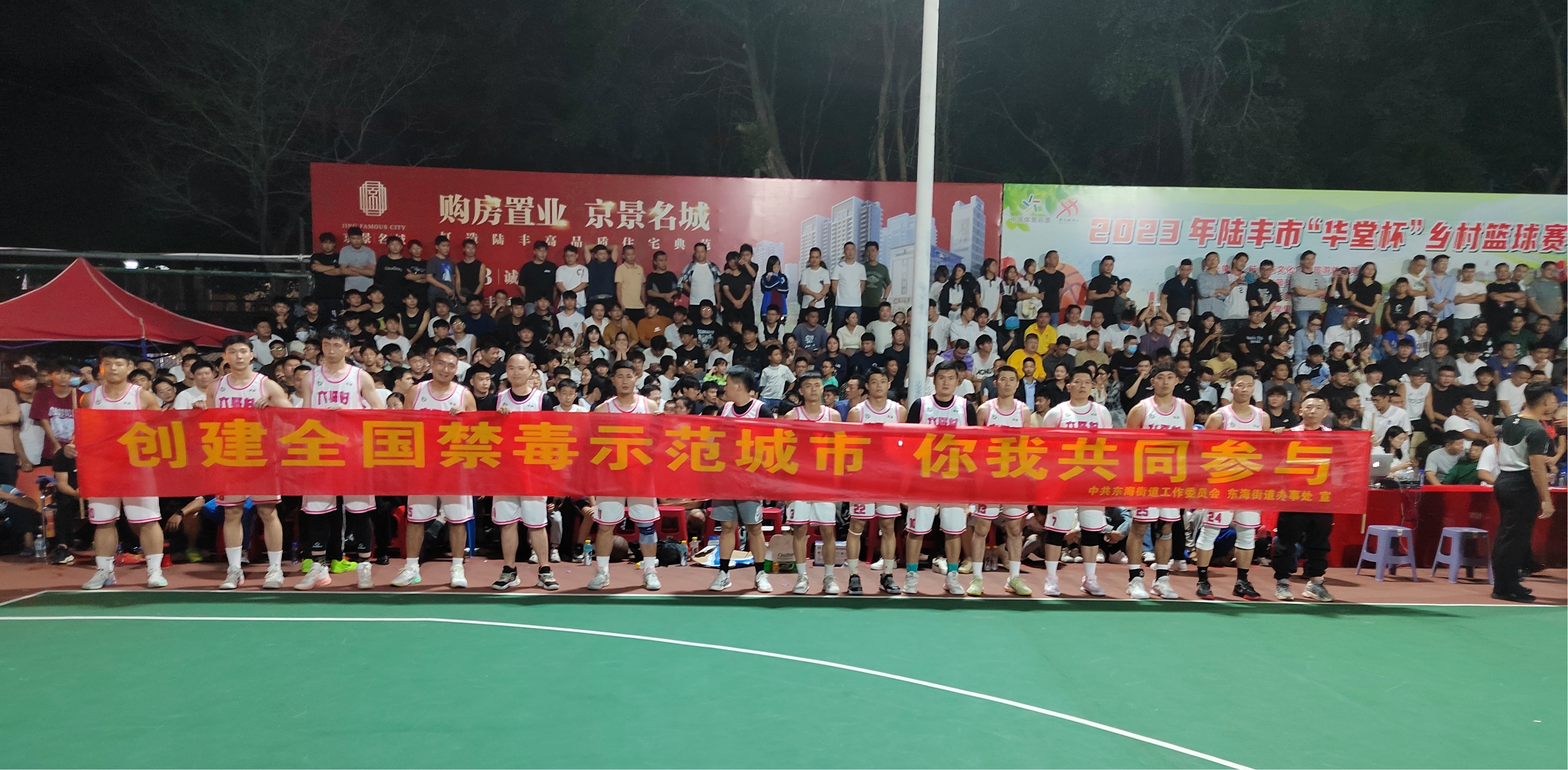 2023年10月19日,首屆“華堂杯”鄉(xiāng)村籃球決賽在陸豐市全民健身廣場舉行,近千名群眾聚集于此觀看決賽,現(xiàn)場氣氛熱烈,東海街道禁毒辦精準(zhǔn)把握契機,結(jié)合大賽開展以“創(chuàng)建全國禁毒示范城市 你我共同參與”為主題的“籃球+禁毒”宣傳活動。