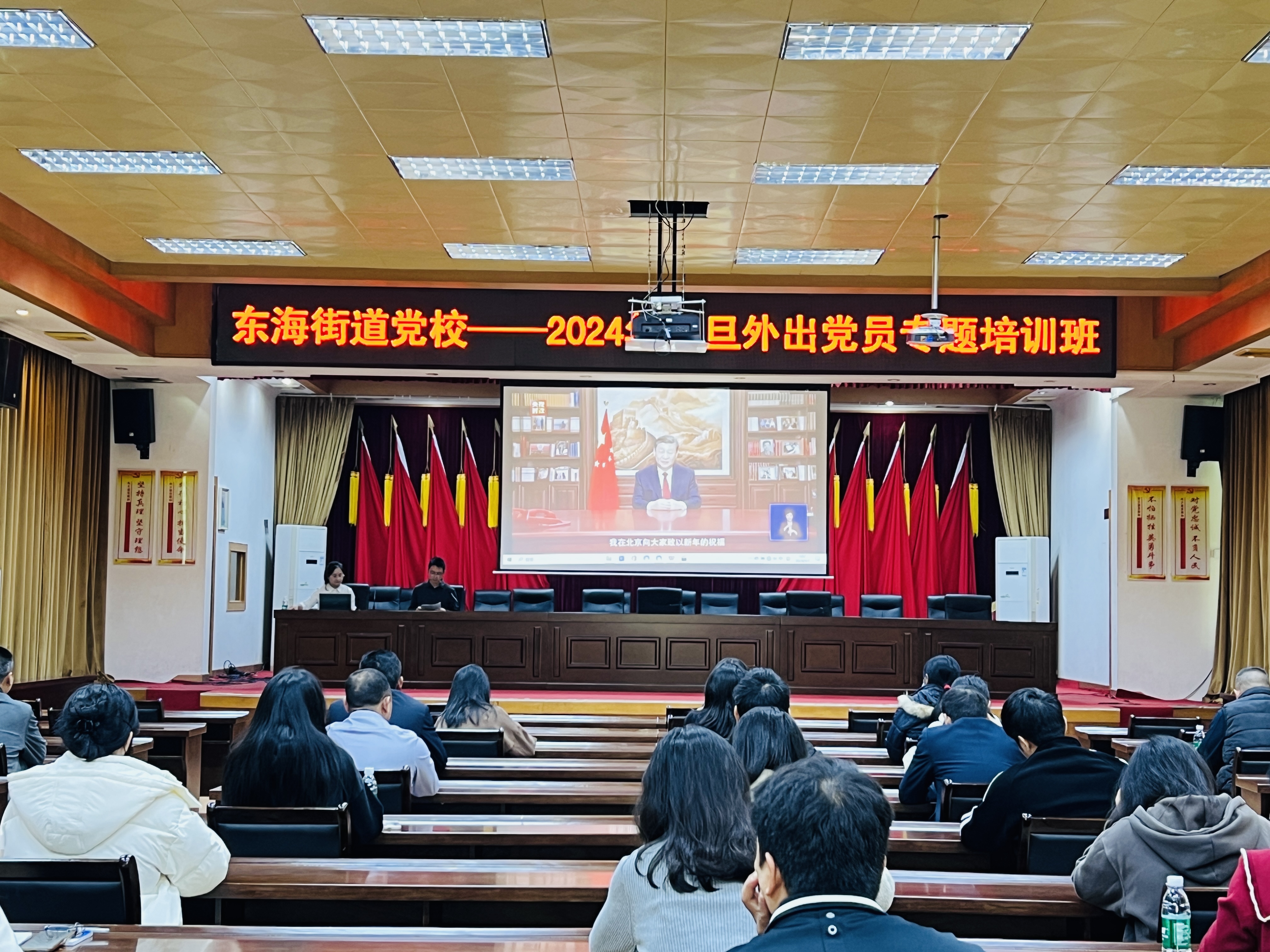 1月1日,東海街道黨校舉辦2024年元旦外出黨員專題培訓班。街道共計89名外出黨員參加培訓。