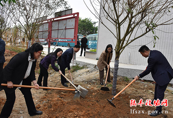 植樹現(xiàn)場(chǎng)一派熱火朝天的景象。參加活動(dòng)的市政協(xié)委員相互配合,一邊揮起鋤頭和鏟子齊心協(xié)力種下苗木,一邊熱烈交流,討論近年來陸豐的發(fā)展變化,個(gè)個(gè)干勁十足。經(jīng)過一番辛勤勞作,100多株新培植的苗木迎風(fēng)挺立,為春日的陸豐大地增添了一抹盎然生機(jī)。