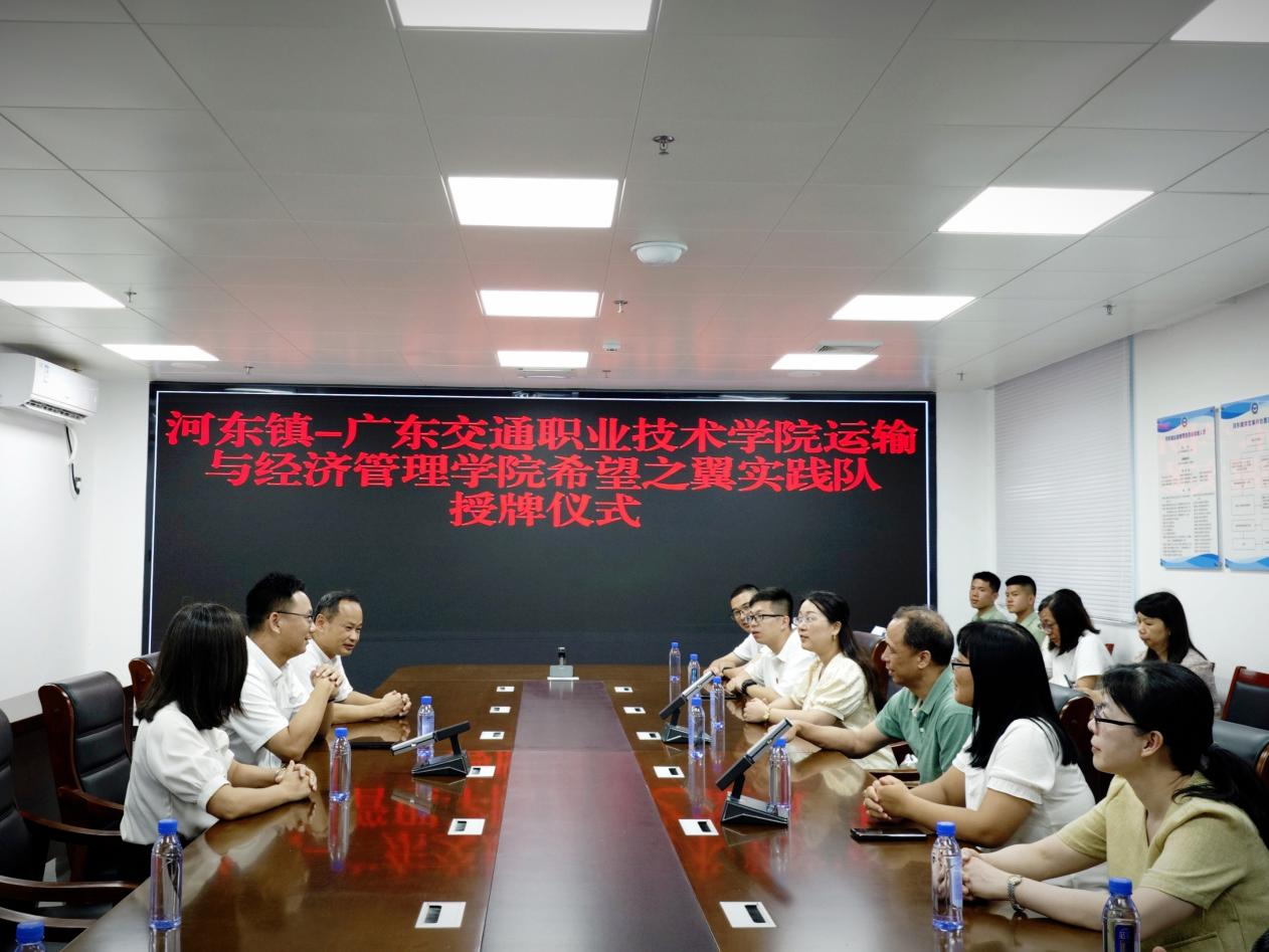 2024年6月29日下午,廣東交通職業(yè)技術(shù)學(xué)院運輸與經(jīng)濟(jì)管理學(xué)院希望之翼實踐隊暑期“三下鄉(xiāng)”社會實踐授牌儀式在陸豐市河?xùn)|鎮(zhèn)人民政府順利進(jìn)行。河?xùn)|鎮(zhèn)黨委副書記、鎮(zhèn)長邱漢專、黨委副書記余梓喬、團(tuán)委書記廖靜,運輸與經(jīng)濟(jì)管理學(xué)院黨委書記伍雄暉、副院長蔡善文、辦公室主任吳雙芳、輔導(dǎo)員曾生峰和實踐隊成員出席參加。