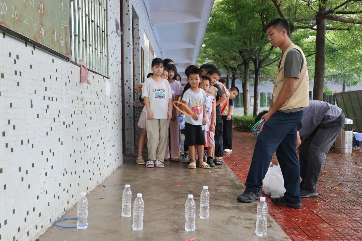 為了讓愛國主義教育更加生動(dòng)有趣,實(shí)踐隊(duì)精心設(shè)計(jì)了一系列紅色知識(shí)相關(guān)游戲?!凹t色圈圈使命記” 游戲中,孩子們站在一定距離外,將手中的圈圈投向擺放著與紅色歷史、革命使命相關(guān)問題的區(qū)域。每當(dāng)投中一個(gè)圈圈,孩子們就興奮地跑過去回答問題,在游戲中學(xué)習(xí)紅色知識(shí)?!氨}g進(jìn)擊戰(zhàn)”同樣充滿了樂趣,孩子們用球擊倒帶有紅色知識(shí)問題的瓶子,然后認(rèn)真思考并回答問題,贏取小獎(jiǎng)品。這些游戲不僅讓孩子們在歡樂中學(xué)習(xí),還培養(yǎng)了他們的團(tuán)隊(duì)合作精神。