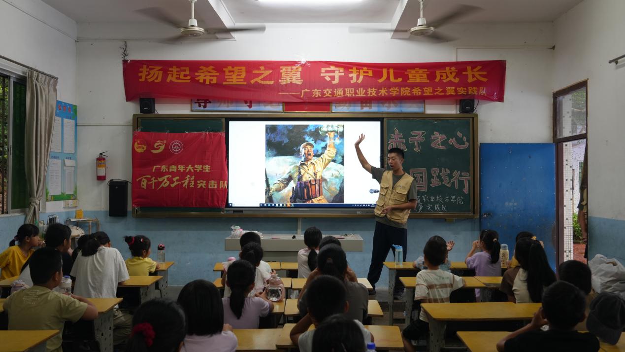 愛國主義是中華民族的優(yōu)良傳統(tǒng),也是中華民族精神的核心,要把愛國主義教育貫穿國民教育和精神文明建設(shè)全過程。2024年8月19日,在河?xùn)|鎮(zhèn)大屯小學(xué),一場別開生面的愛國主義教育活動(dòng)正在展開。廣東交通職業(yè)技術(shù)學(xué)院希望之翼實(shí)踐隊(duì)以“赤子之心,愛國踐行”為主題,為孩子們帶來了一次難忘的愛國之旅。