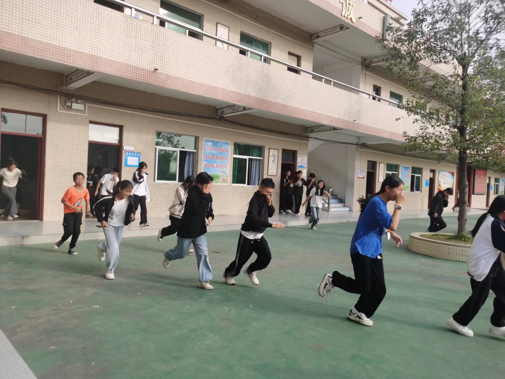 (師生達安全集結(jié)點,各班級迅速集合清點人數(shù))