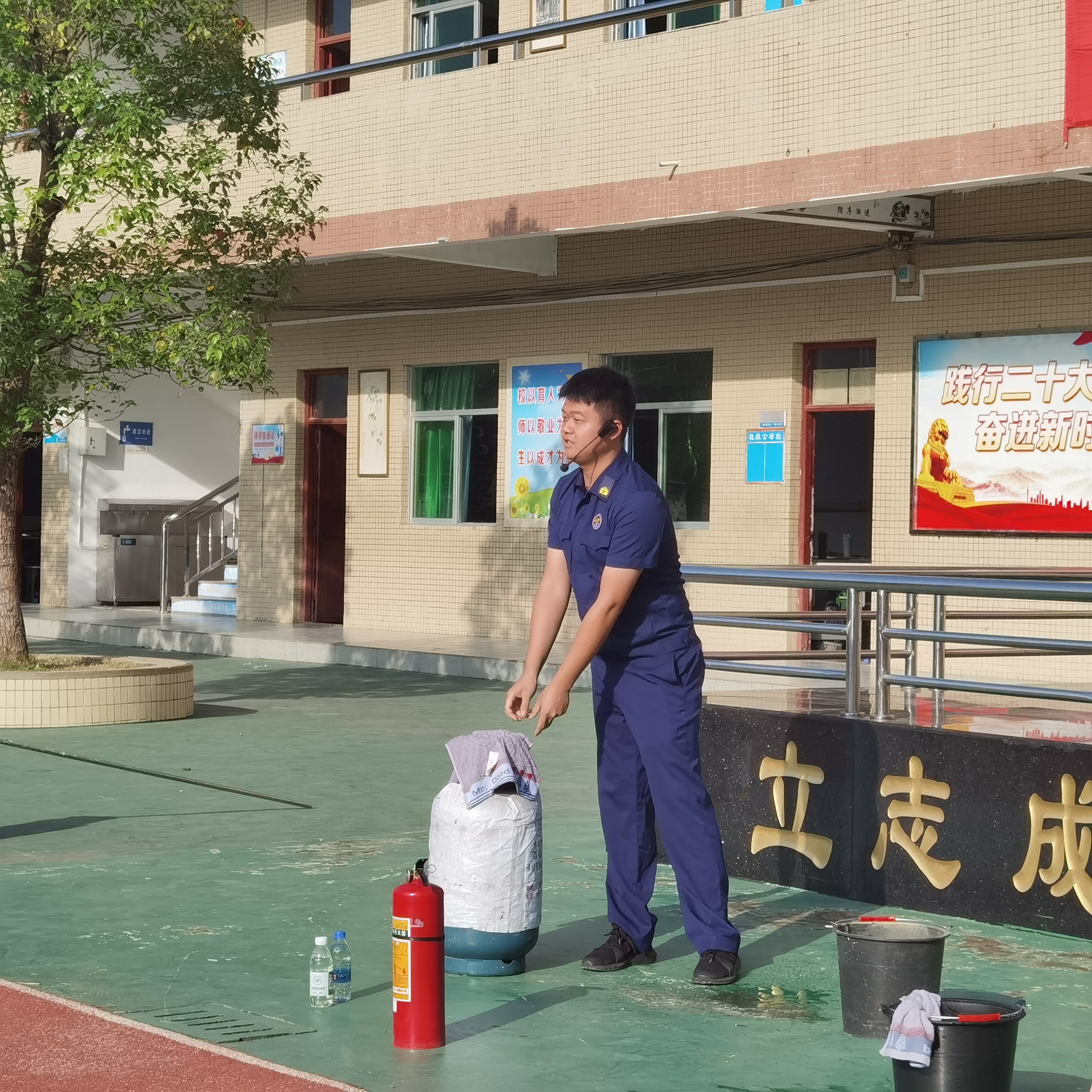 最后,鎮(zhèn)消防所專職消防員為全體師生進行消防培訓(xùn),講解了防火、滅火、逃生、滅火工具使用等內(nèi)容?!盎馂?zāi)發(fā)生怎么辦?”、“大火封門怎么辦?”、“突遇火災(zāi)怎么跑、怎么捂鼻?”、“多高的樓層可以跳、怎么跳?”“煤氣泄氣著火后怎么辦”,現(xiàn)場以提問的方式進行互動,講解內(nèi)容生動有趣,取到較好效果。同時,還系統(tǒng)講解了消防應(yīng)急照明燈、手提式干粉滅火器、消防水槍、消防水帶等滅火工具的使用方法,并讓學(xué)生代表現(xiàn)場進行實際操作,每位學(xué)生都按照講解的要點,做到掌握精準(zhǔn)。