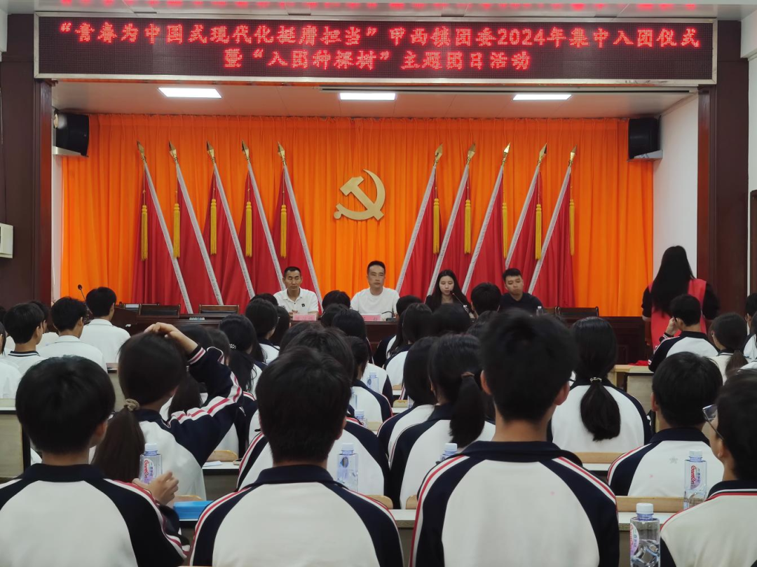 為深入學習貫徹習近平總書記關(guān)于青年工作的重要思想,激勵廣大團員青年弘揚和傳承“五四”精神,紀念“五四運動”105周年,加強團員隊伍思想政治建設,選取團員榜樣激勵廣大青年團員,增強團的凝聚力和向心力,動員全鎮(zhèn)團員在綠美廣東生態(tài)建設中勇當生力軍和突擊隊。5月7日上午,在團市委及甲西鎮(zhèn)黨委、政府的指導下,甲西鎮(zhèn)團委組織甲西中學、甲西二中團總支團干部和團員開展“青春為中國式現(xiàn)代化挺膺擔當”甲西鎮(zhèn)團委2024年集中入團儀式暨“入團種棵樹”主題團日活動。甲西鎮(zhèn)黨委副書記陳銳、鎮(zhèn)團委書記鐘佩鍶、甲西中學團總支書記李漢榕、甲西二中團總支書記唐澤輝、新寨村委會以及新老團員代表80余人參加此次活動。