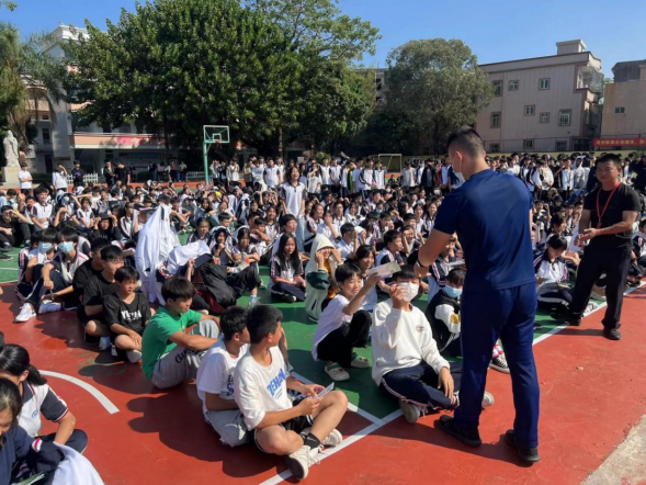 當(dāng)天,組織學(xué)生列隊(duì)在操場后,消防所工作人員為學(xué)生們發(fā)放相關(guān)宣傳資料,用通俗易懂的語言向?qū)W生們介紹了器材裝備、安全指示標(biāo)志、日常防火小常識及消防法等內(nèi)容,讓同學(xué)們深刻了解火災(zāi)的危害性,掌握自救、逃生知識和自我保護(hù)技能。接著為全體師生進(jìn)行消防器材介紹、滅火實(shí)踐培訓(xùn)、防毒面罩佩戴講解,進(jìn)一步提高了師生們的防火意識和發(fā)生火災(zāi)時的逃生技巧,提高了師生們緊急應(yīng)變能力。