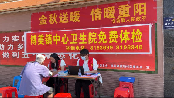 為切實保障好老年人的身體健康,落實好65歲以上老年人健康體檢的惠民政策,近日,博美鎮(zhèn)中心衛(wèi)生院組織醫(yī)務人員前往各村(社區(qū))開展下鄉(xiāng)健康體檢活動,讓相關人群及行動不便的老年人足不出戶就享受免費的健康體檢。用實際行動給老年人送溫暖,對有些行動不便的老年人還進行了入戶體檢。重陽節(jié)當天,由鎮(zhèn)政府牽頭,組織衛(wèi)生院醫(yī)護人員、志愿者、霞繞村委干部等在霞繞村委會開展老年人體檢下鄉(xiāng)活動。
