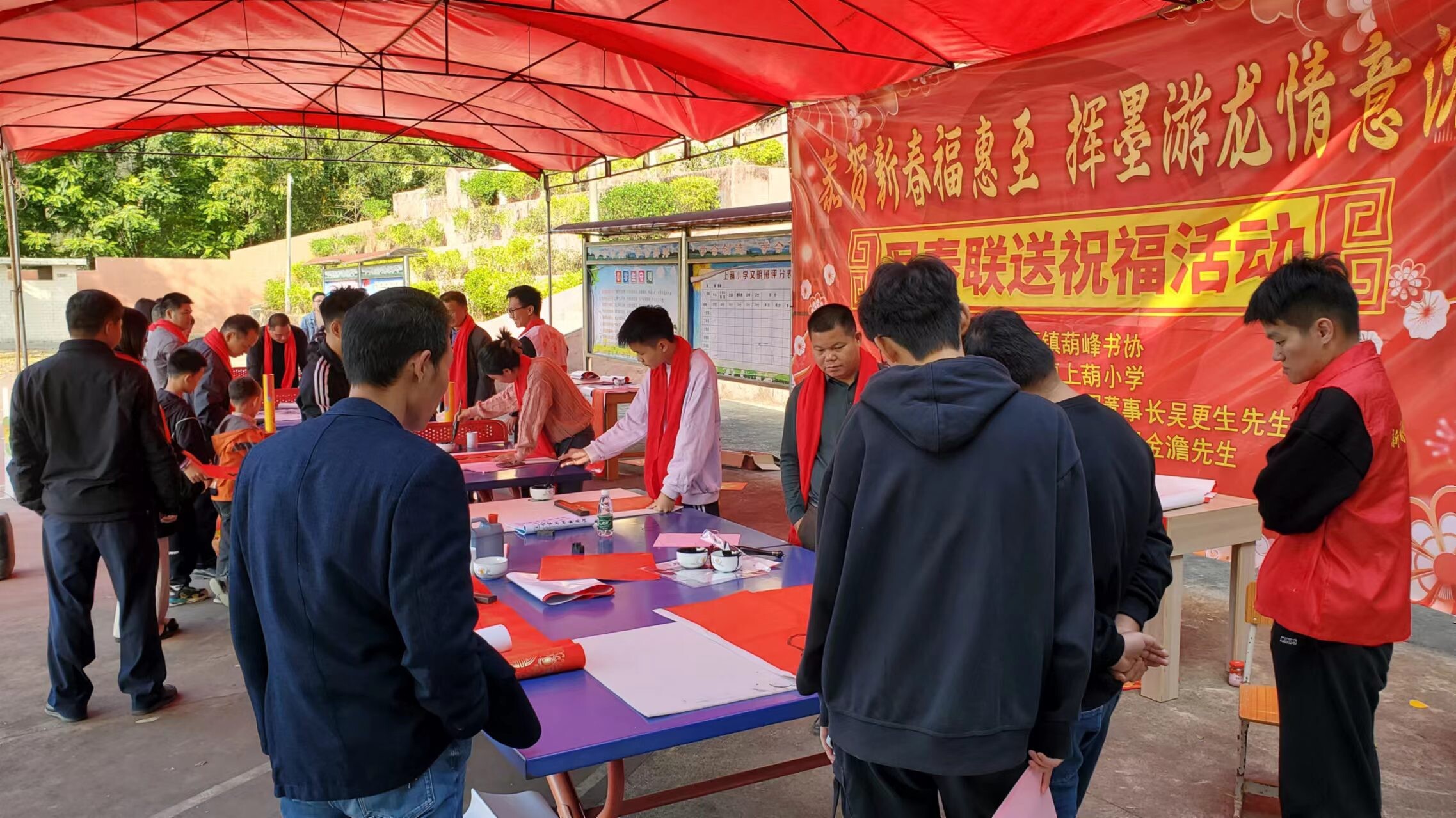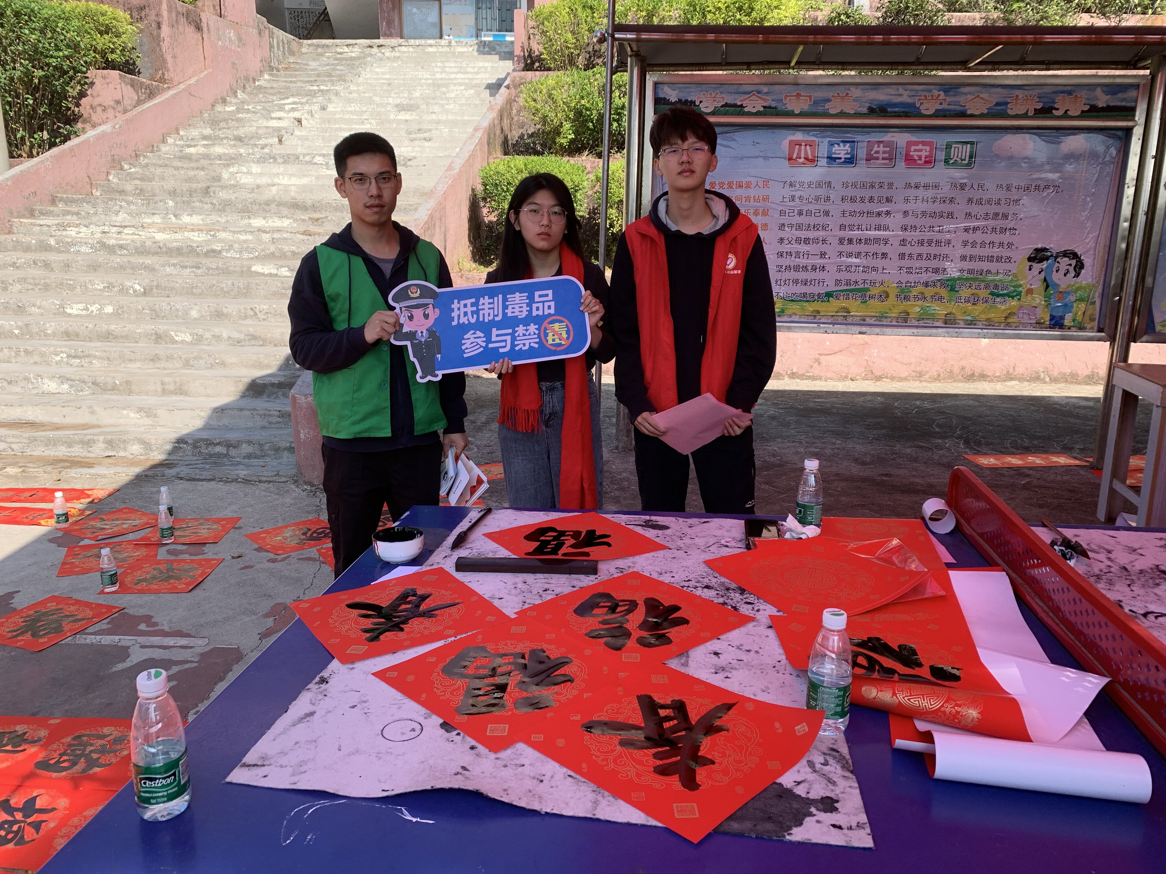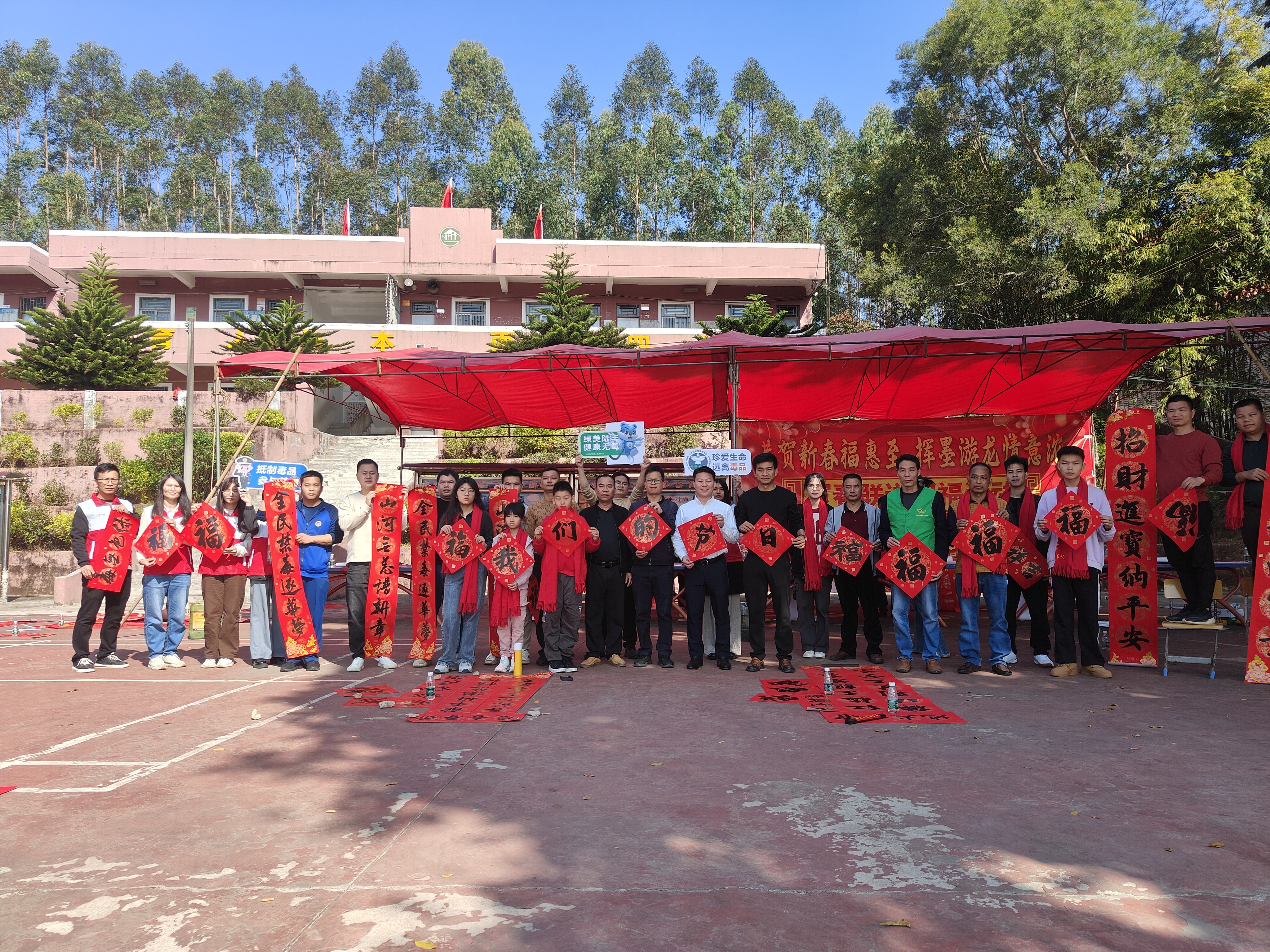 新春佳節(jié)即將來臨之際,為進一步豐富群眾的文化生活,營造全民禁毒的濃厚氛圍,抓住在外務工人員集中返鄉(xiāng)、群眾探親團聚等重要時節(jié)。2024年2月5日,八萬鎮(zhèn)沈科偉副書記、翟藝程副鎮(zhèn)長帶領鎮(zhèn)綜治辦、禁毒辦、公共服務辦、團鎮(zhèn)委、新時代文明實踐中心、應急中心、經發(fā)中心、上葫村兩委干部、禁毒志愿者聯合陸豐市八萬鎮(zhèn)葫峰書協,到上葫小學開展以“寫春聯送祝福志愿服務活動”為載體的禁毒宣傳活動。
