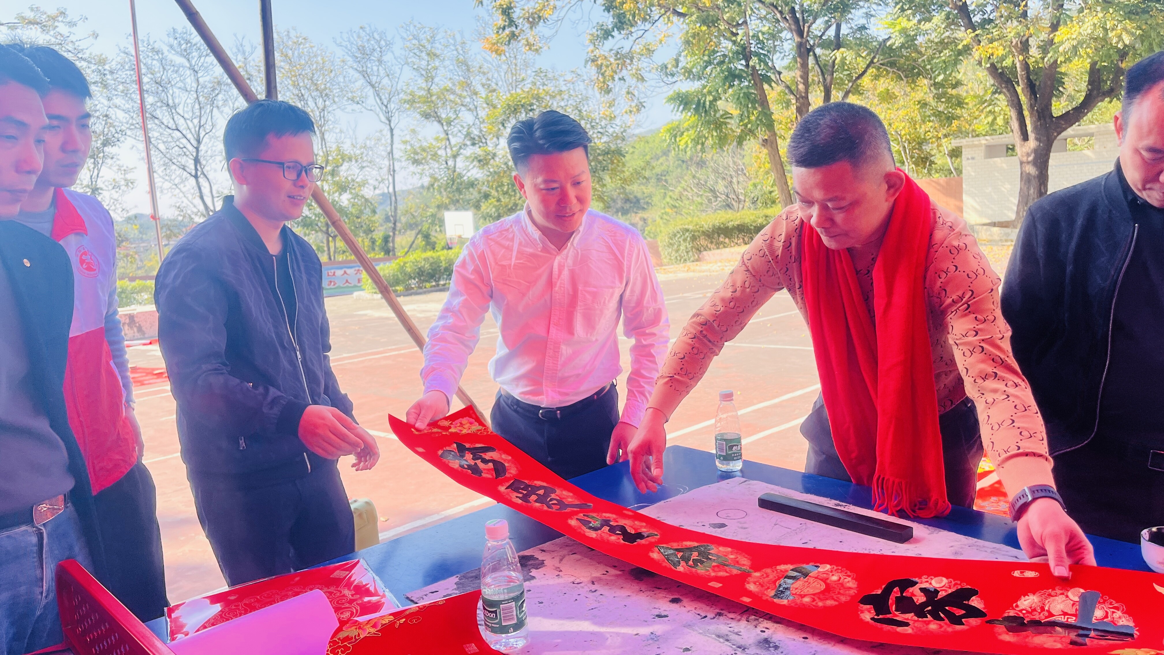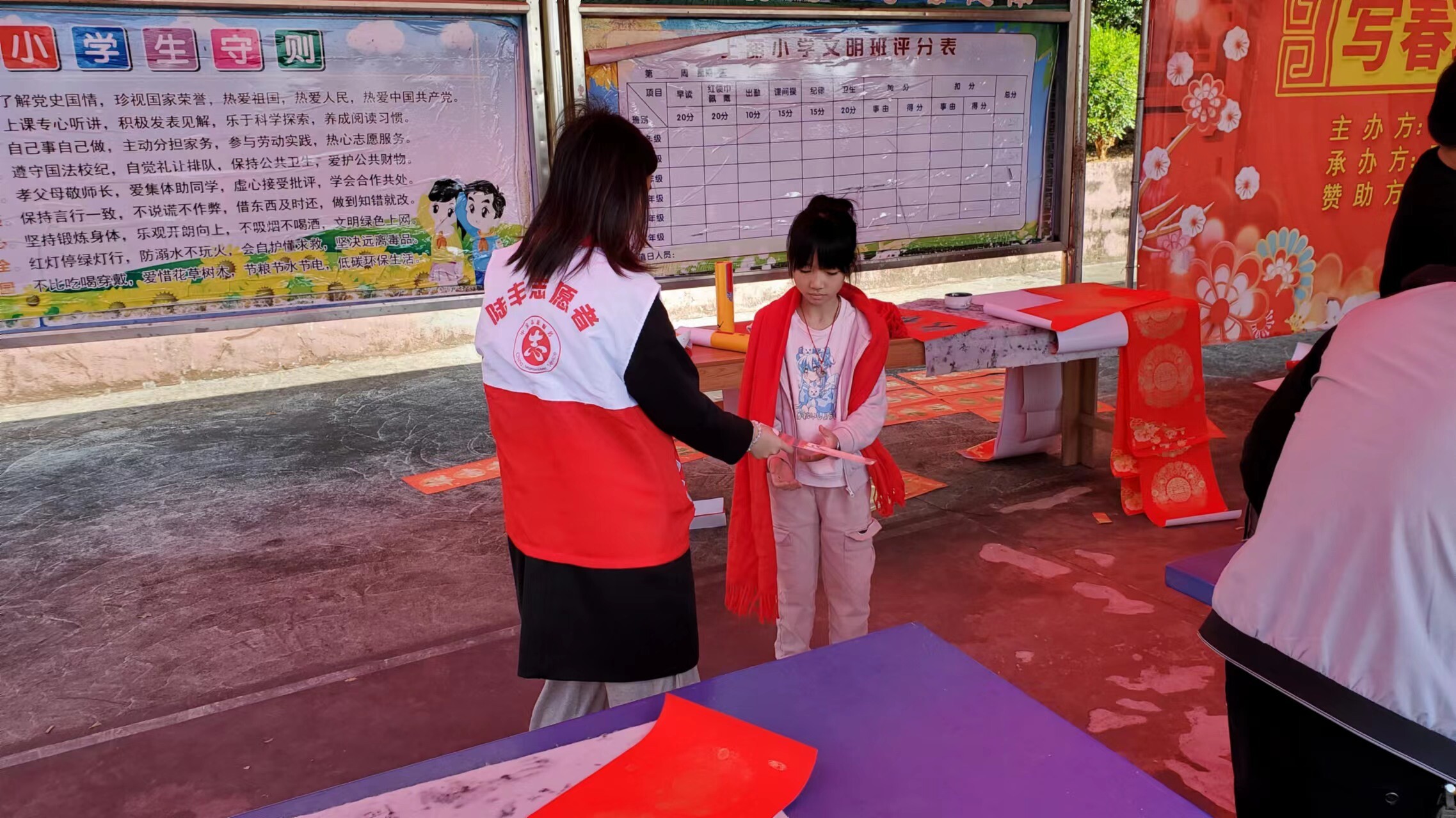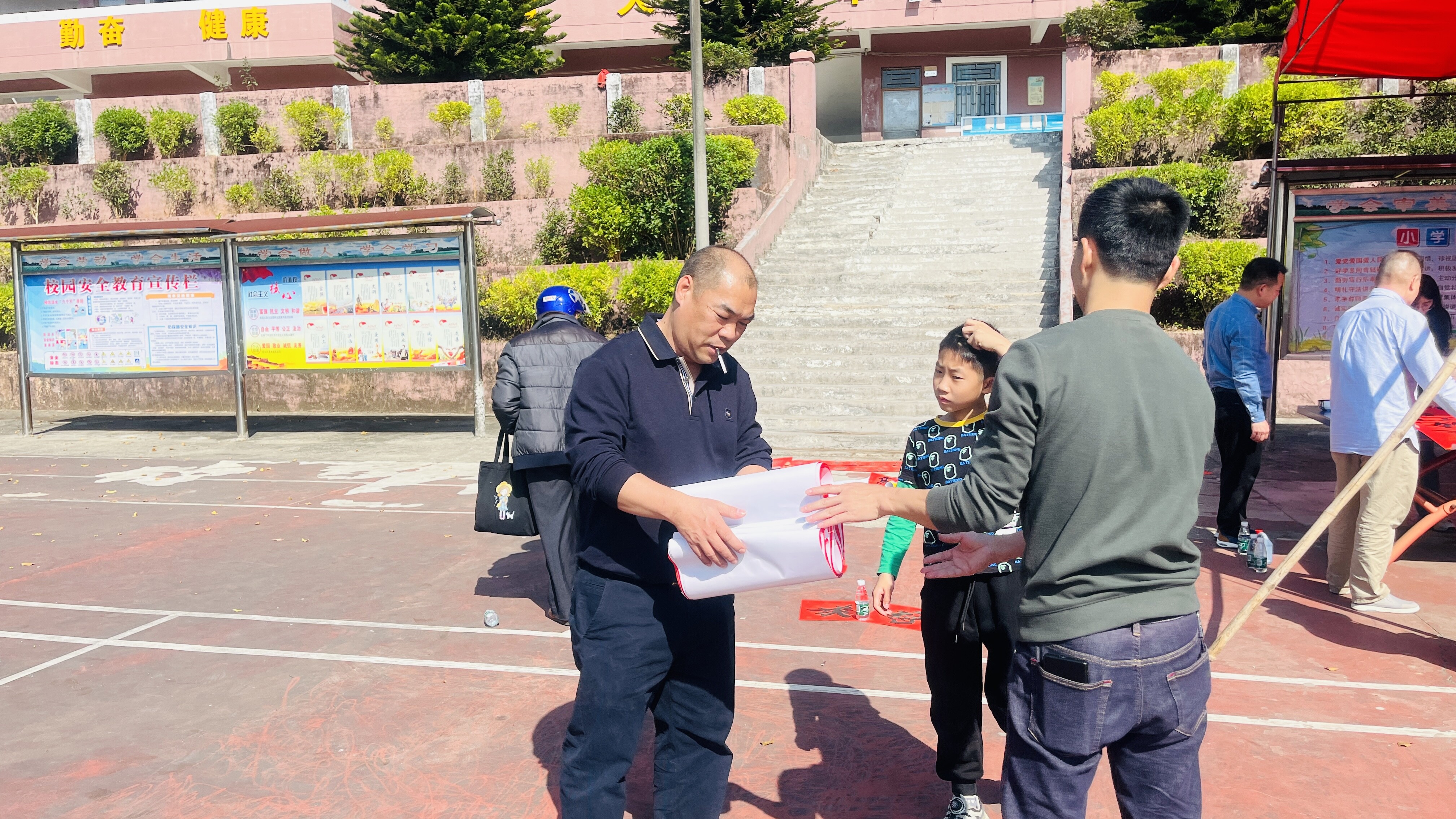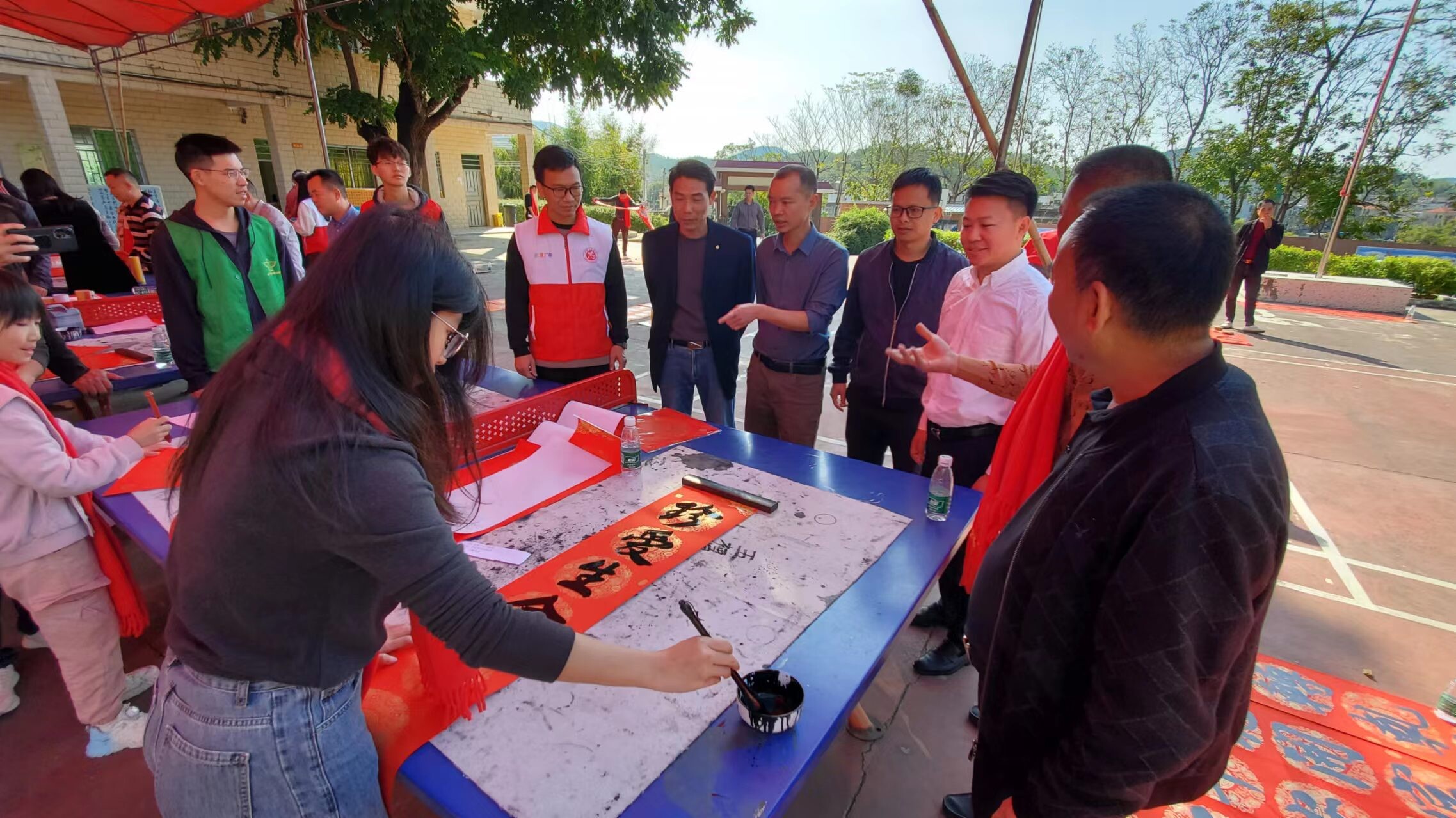 新春佳節(jié)即將來臨之際,為進一步豐富群眾的文化生活,營造全民禁毒的濃厚氛圍,抓住在外務工人員集中返鄉(xiāng)、群眾探親團聚等重要時節(jié)。2024年2月5日,八萬鎮(zhèn)沈科偉副書記、翟藝程副鎮(zhèn)長帶領鎮(zhèn)綜治辦、禁毒辦、公共服務辦、團鎮(zhèn)委、新時代文明實踐中心、應急中心、經發(fā)中心、上葫村兩委干部、禁毒志愿者聯合陸豐市八萬鎮(zhèn)葫峰書協,到上葫小學開展以“寫春聯送祝福志愿服務活動”為載體的禁毒宣傳活動。