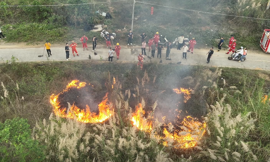 培訓(xùn)完畢后,參訓(xùn)人員前往八萬鎮(zhèn)高塘村鯉魚洞橋頭參與實戰(zhàn)演練,本次演練全面模擬了森林火災(zāi)從突發(fā)、應(yīng)急響應(yīng)直至成功撲滅的全流程場景,訓(xùn)練了以水滅火技法和協(xié)同撲滅戰(zhàn)術(shù)。模擬火災(zāi)發(fā)生后,應(yīng)急隊伍迅速集結(jié)待命,根據(jù)現(xiàn)場指揮分為風(fēng)力滅火、以水滅火、滅火把3個撲救組,分別攜帶各類滅火器械奔赴“火場”。隊員們分工明確,行動迅捷,首先由風(fēng)力滅火、以水滅火撲救組使用風(fēng)力滅火器、消防高壓水槍對火勢進行強力壓制,采用 “一點突破兩翼推進” 的戰(zhàn)術(shù),有序向火源逼近。滅火把撲救組緊隨其后,緊密配合,從不同方向?qū)γ骰鸢l(fā)起總攻。他們牢記 “打早、打小、打了” 的原則,在濃煙與烈火中穿梭,經(jīng)過艱苦奮戰(zhàn),熊熊烈火終于被成功撲滅。火勢撲滅后,撲救隊員也未放松警惕,對火場進行了全面細致的檢查清理,防止火場復(fù)燃。