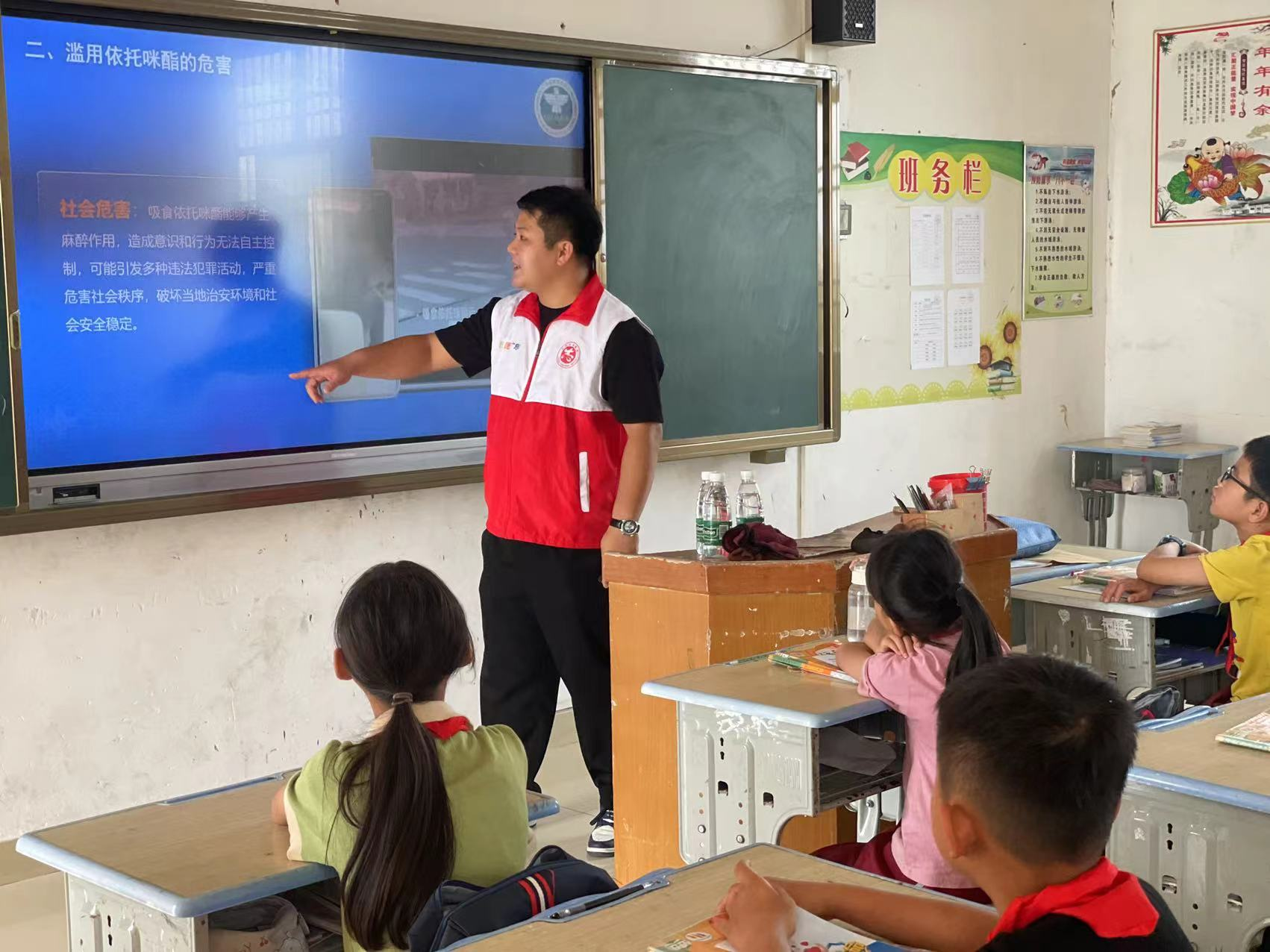 此次活動運用學(xué)校教學(xué)一體機,通過現(xiàn)場播放禁毒教育小課堂、PPT講解演示等方式,以通俗易懂的語言向?qū)W生們詳細講解了新型毒品依托咪酯危害、毒品的識別方法以及如何預(yù)防毒品侵害等知識,教育學(xué)生們在日常生活中要提高警惕,并以問答形式開展禁毒知識搶答活動,進一步加深同學(xué)們對禁毒知識的了解。