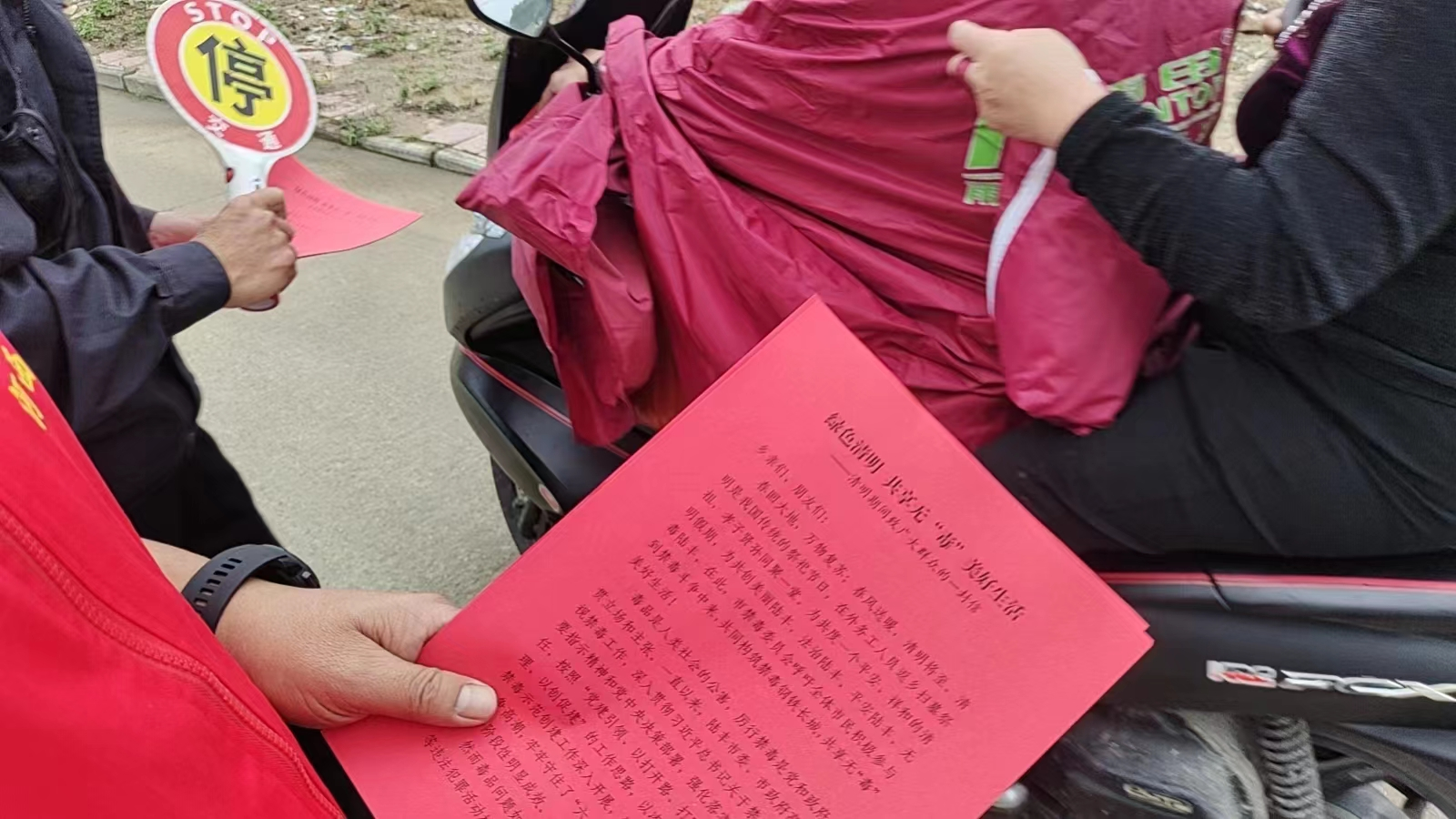4月4日,河西街道禁毒辦結(jié)合森林防火工作,與街道工作人員、各村兩委干部、網(wǎng)格員在各村清明卡口積極勸導(dǎo)廣大市民文明祭祀的同時開展禁毒宣傳活動。通過向群眾發(fā)放森林防火倡議書和禁毒宣傳資料(綠色清明 共享無“毒”美好生活——清明期間致廣大群眾的一封信)200余份,并接受群眾的咨詢,告知清明文明祭掃,講解森林防火的重要性,毒品的種類、特性,以及沾染毒品的危害,發(fā)動群眾關(guān)注中國禁毒、廣東禁毒、汕尾禁毒、陸豐禁毒等微信公眾號,呼吁齊筑防毒長城,共享無“毒”美好生活。