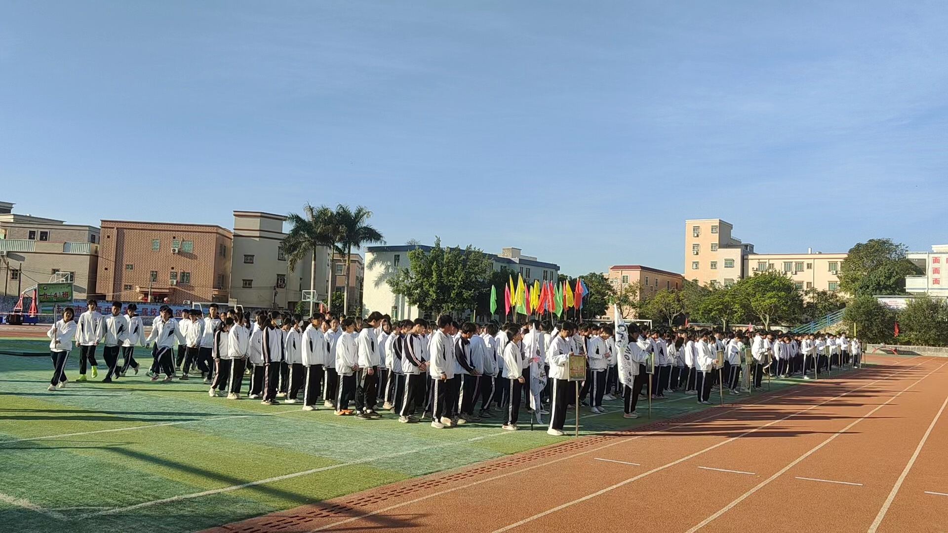根據(jù)街道主要領(lǐng)導(dǎo)指示,此次活動由禁毒分管領(lǐng)導(dǎo)周業(yè)齊組織開展,在后坑村河西中學(xué)開展第二屆校園運動會的同時進(jìn)行禁毒宣傳活動。在街道副書記周業(yè)齊與校長蔡志峰的諄諄教誨與鼓勵動員后,此次運動會就此拉開序幕。隨著一聲聲嘹亮的哨聲,在陣陣的助威加油聲中,200米跑、鉛球、跳繩等體育項目也有序地進(jìn)行著,而志愿者們也各司其職,有的操縱著無人機與相機,記錄下運動健將的矯健身姿;有的在人群中穿梭,為參與運動會的師生們分發(fā)傳單與禁毒宣傳板,為他們講解禁毒知識,引起師生們對毒品危害的重視,擴大禁毒知識的覆蓋面,全面提升師生們“識毒”、“防毒”、“拒毒”、“禁毒”的認(rèn)識程度;在全體師生的共同努力下,運動會圓滿落幕。最后組織學(xué)生合影留念。