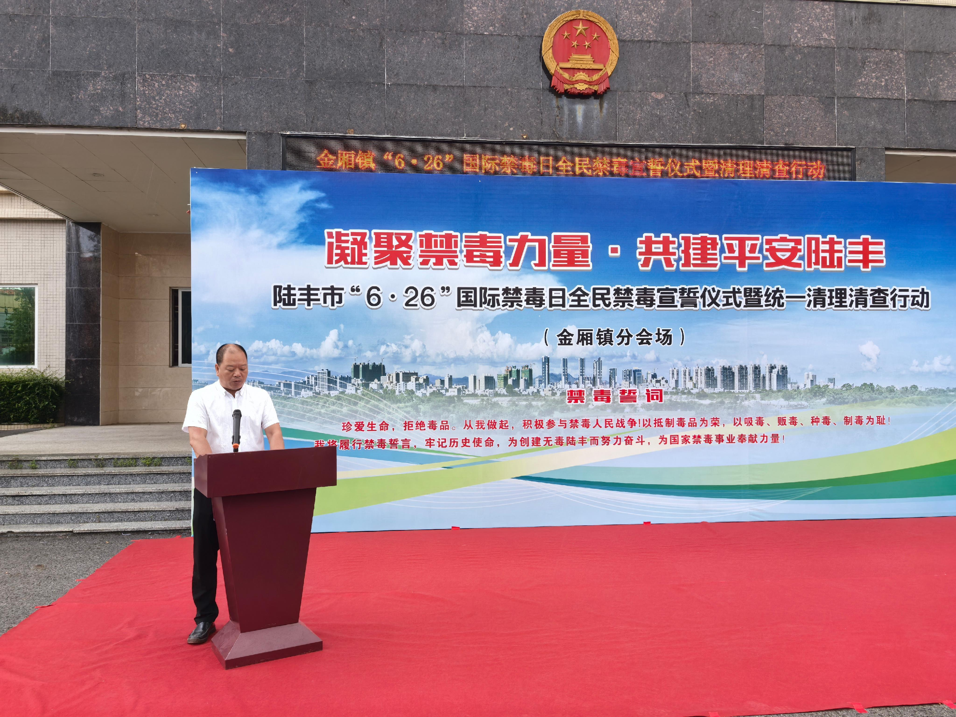 6 月 26 日上午,在第 38 個國際禁毒日來臨之際,金廂 鎮(zhèn)積極開展全民禁毒宣誓儀式暨統(tǒng)一清理清查行動。此次活 動圍繞“凝聚禁毒力量·共建平安陸豐”主題,動員廣大干 部職工、社會各界積極參與禁毒斗爭,依法履行禁毒職責(zé)和 義務(wù),進一步推動形成全民行動,禁絕毒品的良好氛圍。