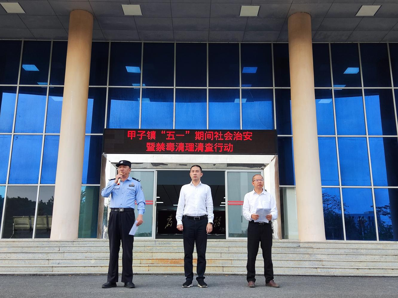 為做好“五一”期間我鎮(zhèn)安保維穩(wěn)和社會面治安防控工作,全力維護全鎮(zhèn)平安穩(wěn)定的社會面治安環(huán)境,全鏈條強化突出犯罪打擊力度,堅決維護甲子鎮(zhèn)社會治安大局持續(xù)穩(wěn)定。結合我鎮(zhèn)毒情實際,鎮(zhèn)黨委/政府決定于今天組織甲子鎮(zhèn)全體干部職工、派出所所有警力、村(社區(qū))兩委干部、掛職民警及網格聯(lián)防大隊共498人,在甲子鎮(zhèn)轄區(qū)范圍內集中力量、重點突擊,開展甲子鎮(zhèn)“五一”期間社會治安暨禁毒清理清查行動。