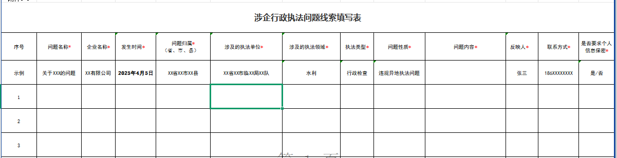 附件:《涉企行政執(zhí)法問題線索填寫表》