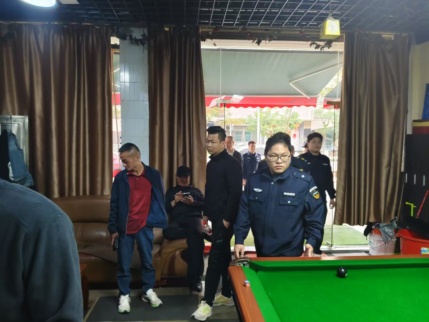 本次行動共分為四個清查小組,清查小組嚴(yán)格按照清查方案要求,以零容忍、零懈怠、零疏漏的工作思路,堅持問題導(dǎo)向,樹牢底線思維,因地制宜、因情施策,緊緊圍繞隱患突出、發(fā)案頻繁、防范薄弱等重點(diǎn)部位、場所、地區(qū)強(qiáng)化對全鎮(zhèn)娛樂場所、旅館業(yè)、酒店、網(wǎng)吧以及容易滋生黃賭違法犯罪行為的場所清查力度,大力營造嚴(yán)防嚴(yán)查嚴(yán)處的高壓態(tài)勢,最大限度擠壓違法犯罪空間、震懾違法犯罪分子。同時,加大了對全鎮(zhèn)范圍內(nèi)的主要干道、重點(diǎn)地區(qū)、繁華街道、人員密集的場所的巡邏檢查力度,震懾和預(yù)防街頭多發(fā)性違法犯罪。