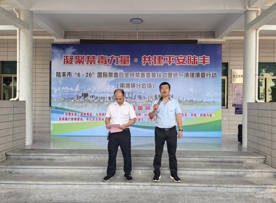 在“6.26”國際禁毒日到來之際,根據(jù)市委、市政府的統(tǒng)一部署,南塘鎮(zhèn)鎮(zhèn)組織鎮(zhèn)全體班子成員、干部職工,各村(社區(qū))支部書記,南塘派出所、南塘交警中隊民(輔)警,全鎮(zhèn)網(wǎng)格聯(lián)防員同步參與全市“凝聚禁毒力量·共建平安陸豐”全民禁毒宣誓儀式暨統(tǒng)一清理清查行動。
