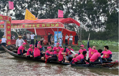 端午節(jié)(6月10日)當(dāng)天,我鎮(zhèn)長(zhǎng)安村委西湖村在東溪河開(kāi)展一場(chǎng)龍舟賽事。在陣陣鑼鼓聲中,選手整齊劃一,龍舟在河道中央爭(zhēng)相競(jìng)渡。河岸兩邊,村民駐足觀看,為參賽選手擂鼓吶喊?,F(xiàn)場(chǎng)鼓聲、吆喝聲、助威聲交織成一片,熱鬧非凡。