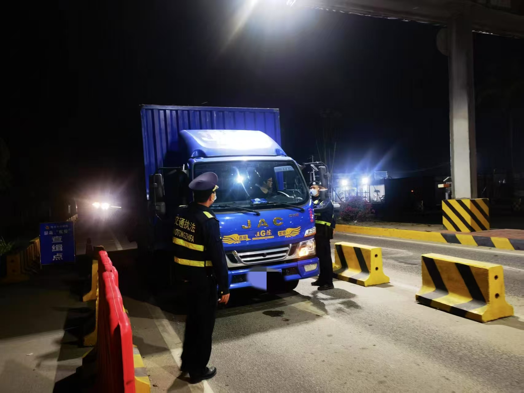 聯(lián)合期間,我局抽調(diào)交通執(zhí)法人員分別在市轄區(qū)內(nèi)湖檢查站、甲港檢查站、陸惠檢查站進行聯(lián)合執(zhí)法行動,實行“5+2”“白+黑”,24小時待命執(zhí)勤模式。行動中共查處核載7座普通客車涉嫌非法營運案件2宗,目前案件正在進一步處理中。