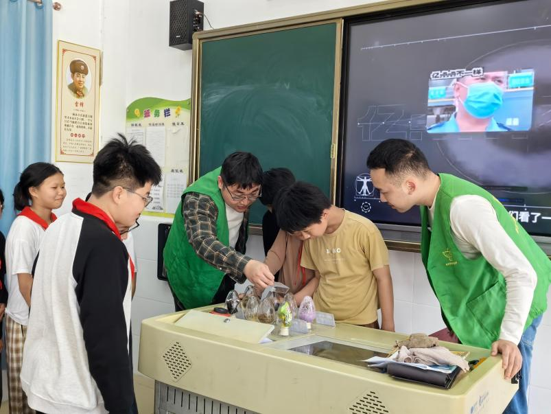 宣傳隊員首先在課室播放了精心挑選的禁毒宣傳視頻,工作人員在旁輔以講解,詳細介紹毒品的種類、危害以及禁毒史、銷毀禁毒的技術(shù)等知識。同學(xué)們的目光緊緊鎖定在屏幕上,時而眉頭緊鎖,時而發(fā)出驚嘆,深刻感受到了毒品的可怕。接著,通過展示各類仿真毒品模型,吸引了大量學(xué)生的關(guān)注。禁毒社工詳細講解了毒品的種類、危害以及如何識別和防范毒品,幫助大家更直觀地了解毒品的危害性。特別是針對近年來出現(xiàn)的依托咪酯等新型毒品替代物質(zhì),禁毒社工重點講解了其偽裝形式、濫用危害以及防范措施,提醒同學(xué)們提高警惕,避免誤入陷阱。同時,禁毒宣傳單的發(fā)放也進一步增強了學(xué)生們的禁毒意識。