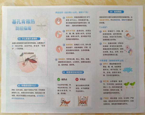 在宣傳工作方面:竹坑村以“入戶聯(lián)心”為契機,黨員志愿者們深入村居,向村民和商戶派發(fā)基孔肯雅熱防控知識宣傳單,詳細講解防蚊滅蚊要點和疾病癥狀,重點提醒村民及時清除家中積水容器、花盆托盤等蚊蟲孳生地,安裝紗窗紗門,做好個人防護;同時,充分利用村居戶外LED電子屏幕,滾動播放通俗易懂的防控宣傳標語,使用廣播大喇叭播放相關宣傳聲帶,重點向老年人普及相關知識。