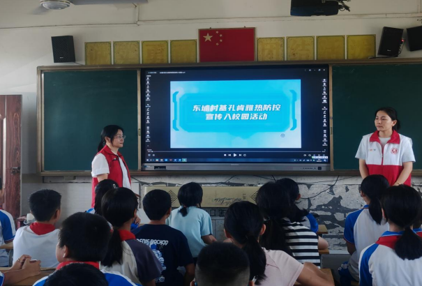 同時為提升學(xué)生對基孔肯雅熱的認(rèn)知水平與自我防護能力,提升學(xué)生對基孔肯雅熱的認(rèn)知與防控能力,通過學(xué)生帶動家庭,家庭影響社會的聯(lián)動效應(yīng),東埔村文明實踐站組織開展《基孔肯雅熱防控宣傳》進校園活動。