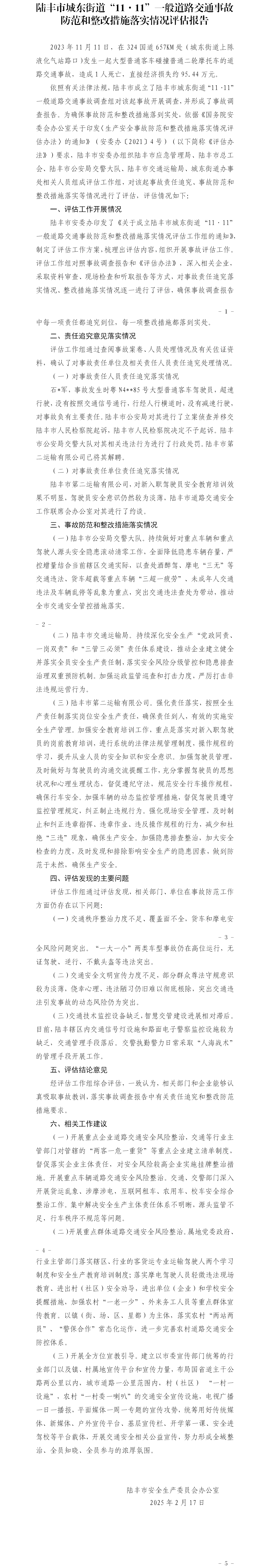 陸豐市城東街道“11·11”一般道路交通事故防范和整改措施落實(shí)情況的評(píng)估報(bào)告