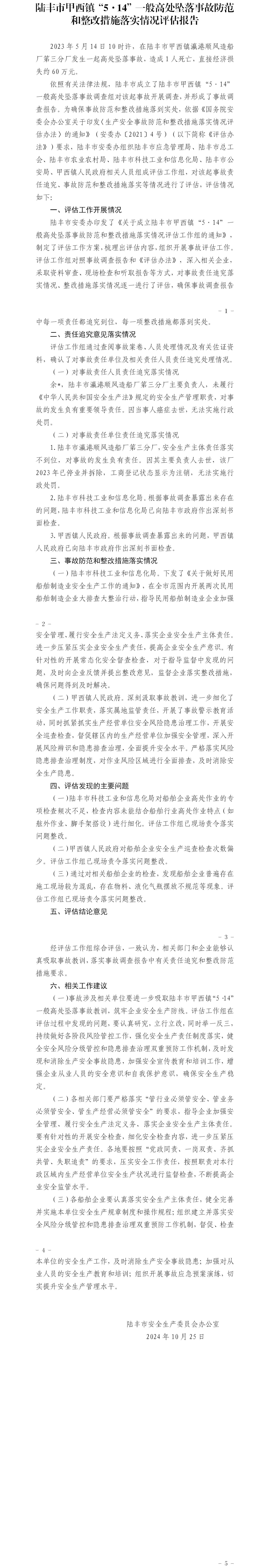 陸豐市甲西鎮(zhèn)“5·14”一般高處墜落事故防范和整改措施落實情況評估報告