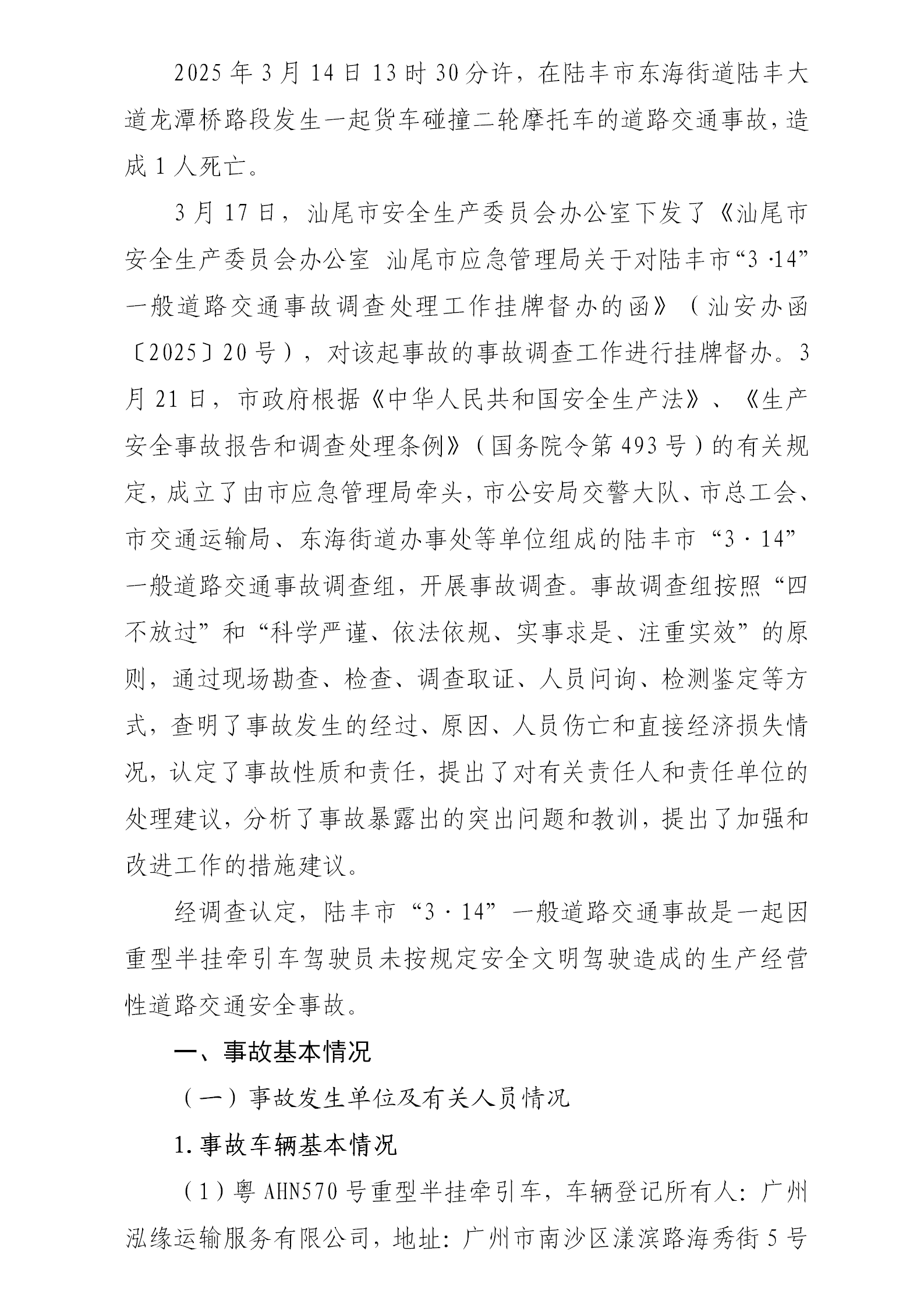 陸豐市“3·14”一般道路交通事故調(diào)查報(bào)告