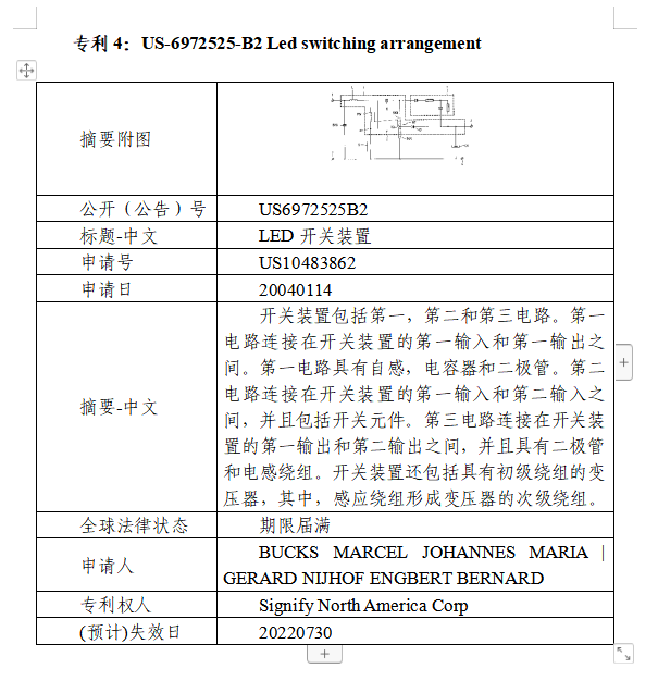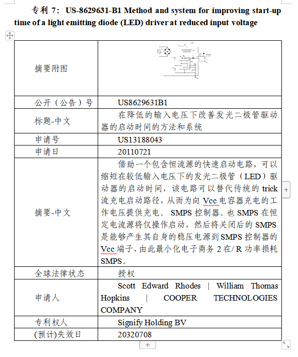 涉案專(zhuān)利共20件,涉及LED驅(qū)動(dòng)電路、光學(xué)元件、系統(tǒng)架構(gòu)等,專(zhuān)利信息詳見(jiàn)下表。值得注意的是,在20件涉案專(zhuān)利中,有7件專(zhuān)利在Signify和Current的訴訟中均有涉及,11件專(zhuān)利由Current提起不侵權(quán)宣告而并未被Signify作為專(zhuān)利侵權(quán)訴訟基礎(chǔ),2件專(zhuān)利Signify作為專(zhuān)利侵權(quán)訴訟基礎(chǔ)但Current未提起不侵權(quán)宣告。