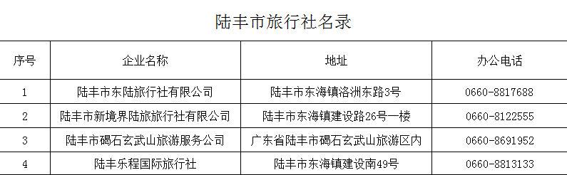 陸豐市旅行社名錄