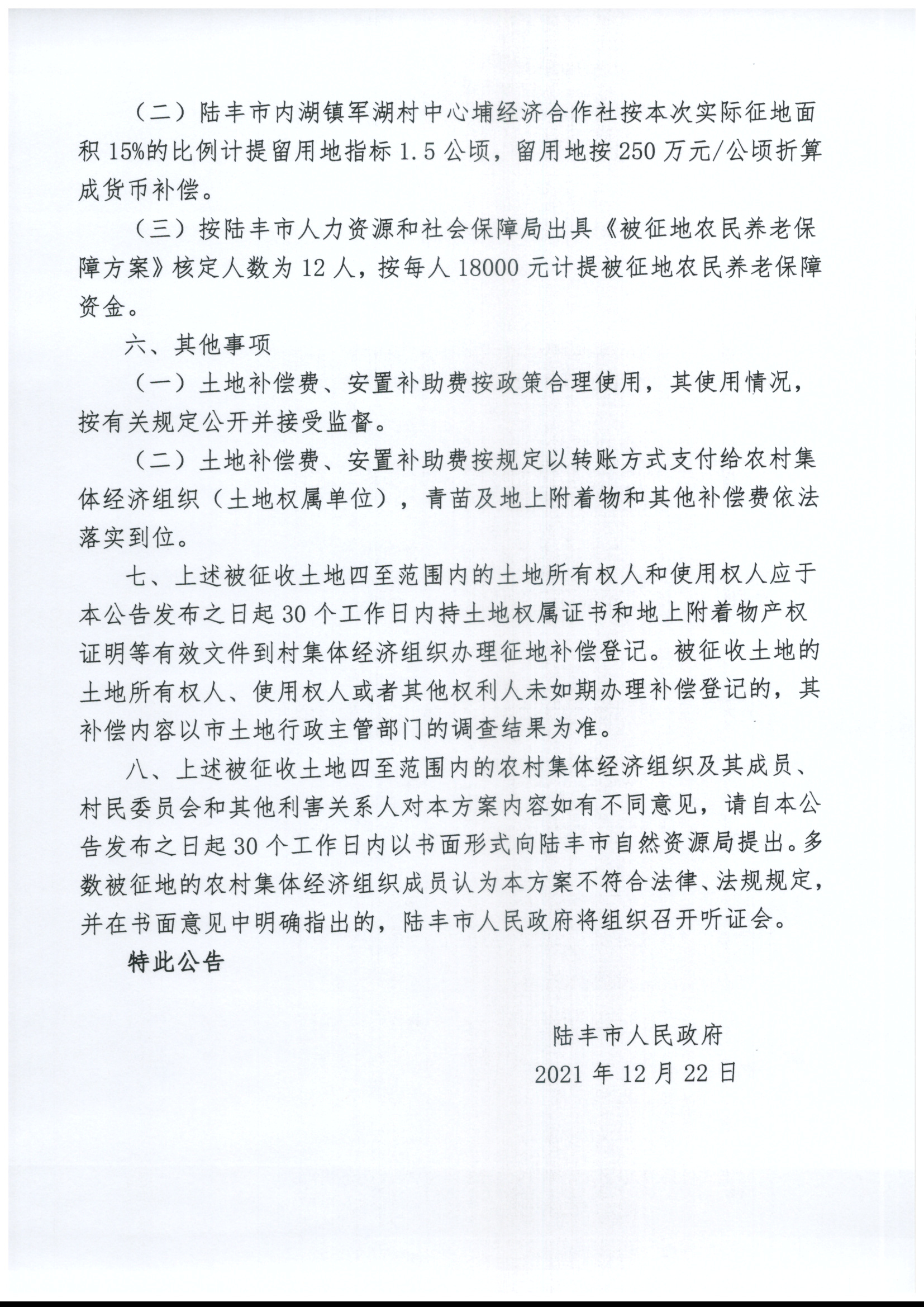 陸豐市人民政府關(guān)于征收土地補(bǔ)償安置方案的公告(陸府公〔2021〕45號(hào))