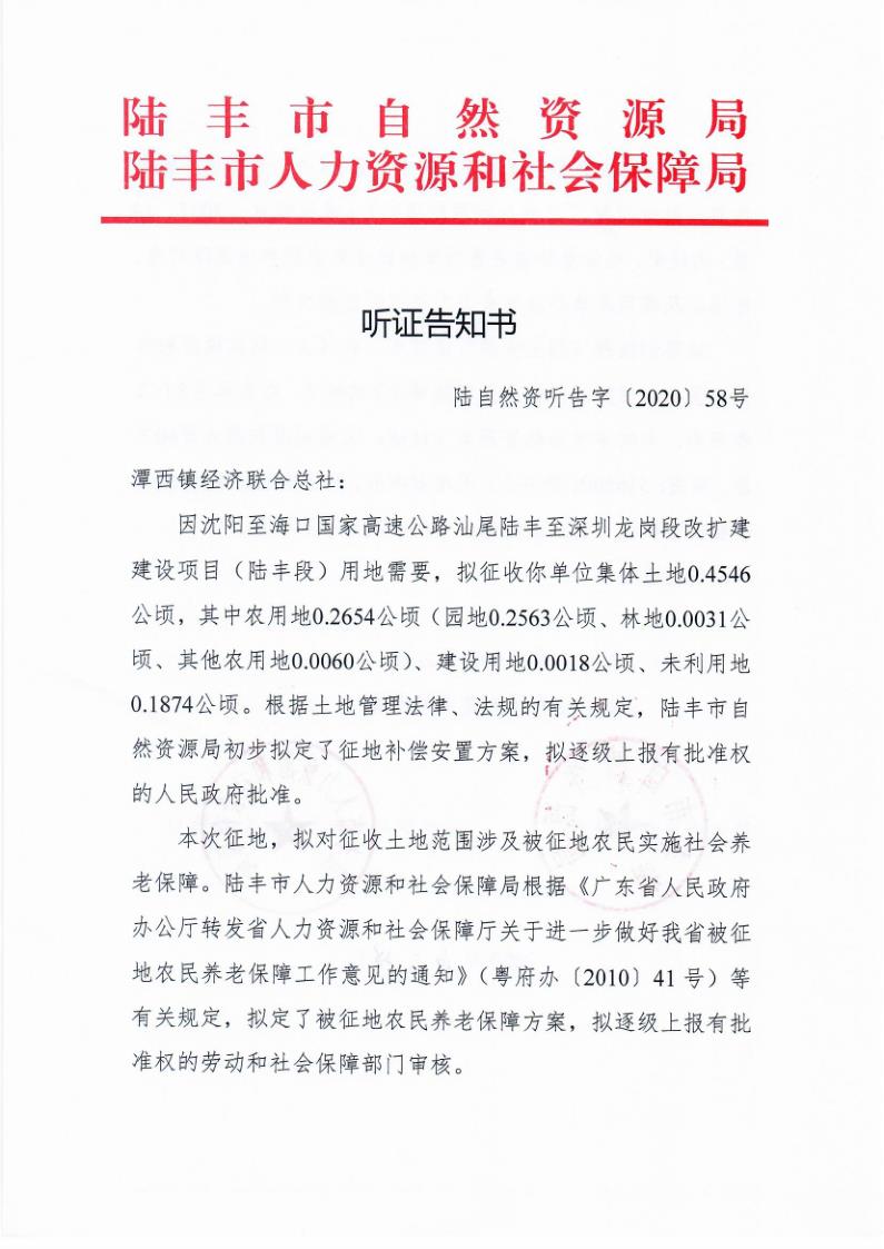聽(tīng)證告知書(shū)(陸自然資聽(tīng)告字[2020]58號(hào))
