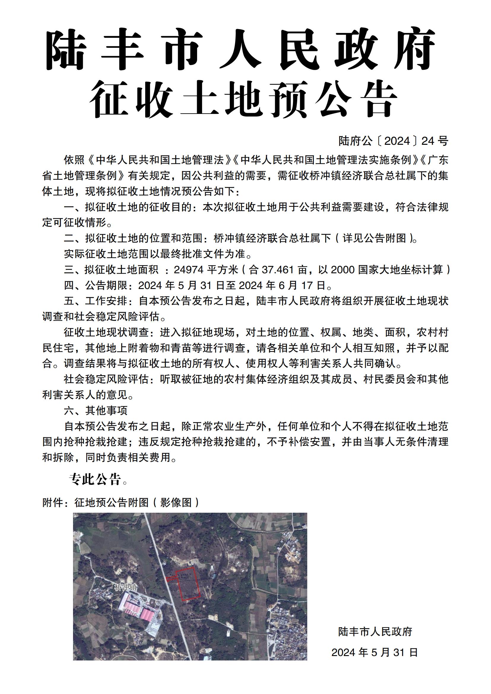 陸豐市人民政府征收土地預(yù)公告(陸府公〔2024〕24號(hào))