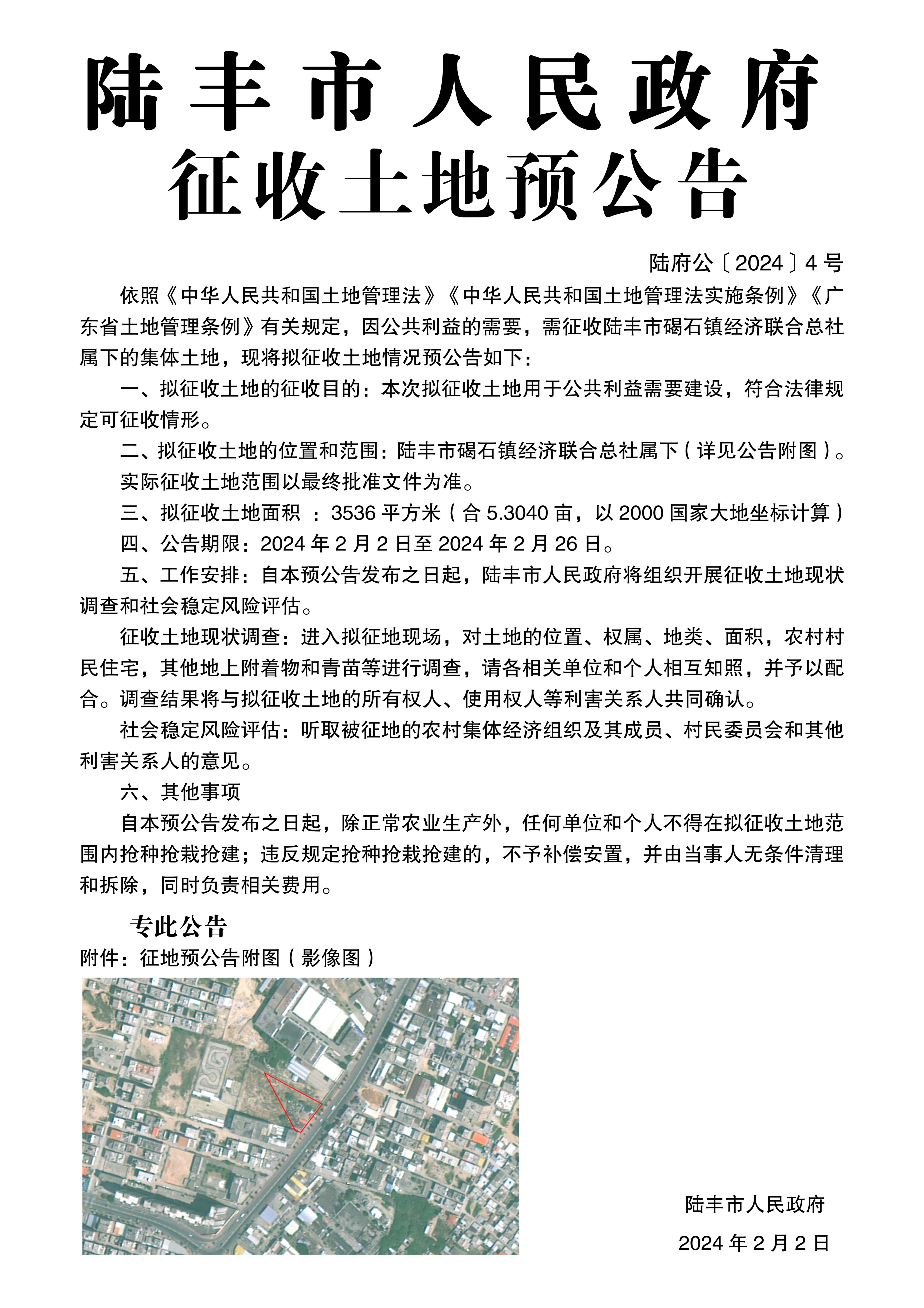 陸豐市人民政府征收土地預(yù)公告(陸府公〔2024〕4號(hào))