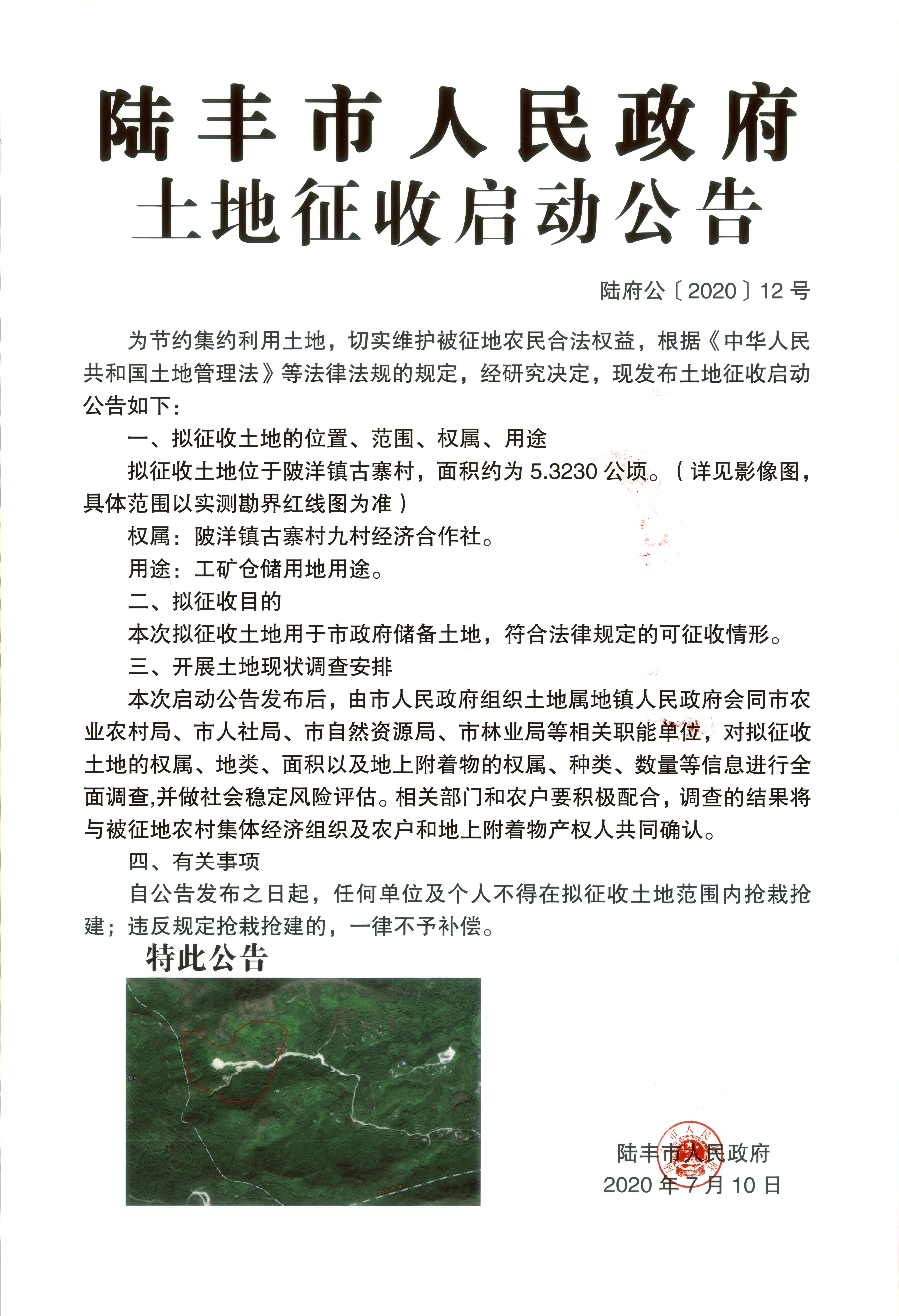 陸豐市人民政府土地征收啟動(dòng)公告(陸府公(2020)12號(hào))