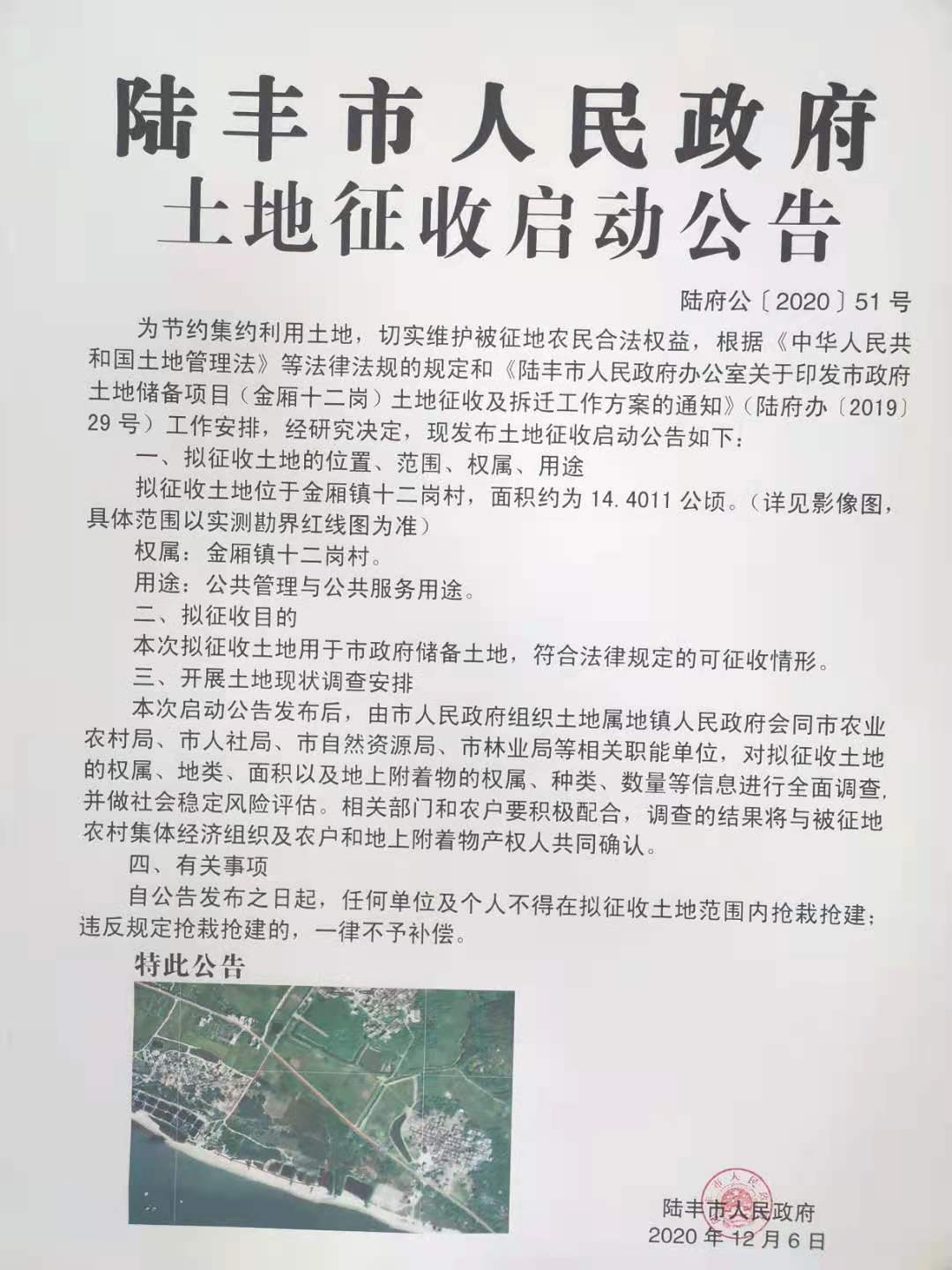 陸豐市人民政府土地征收啟動(dòng)公告(陸府公[2020]51號(hào))