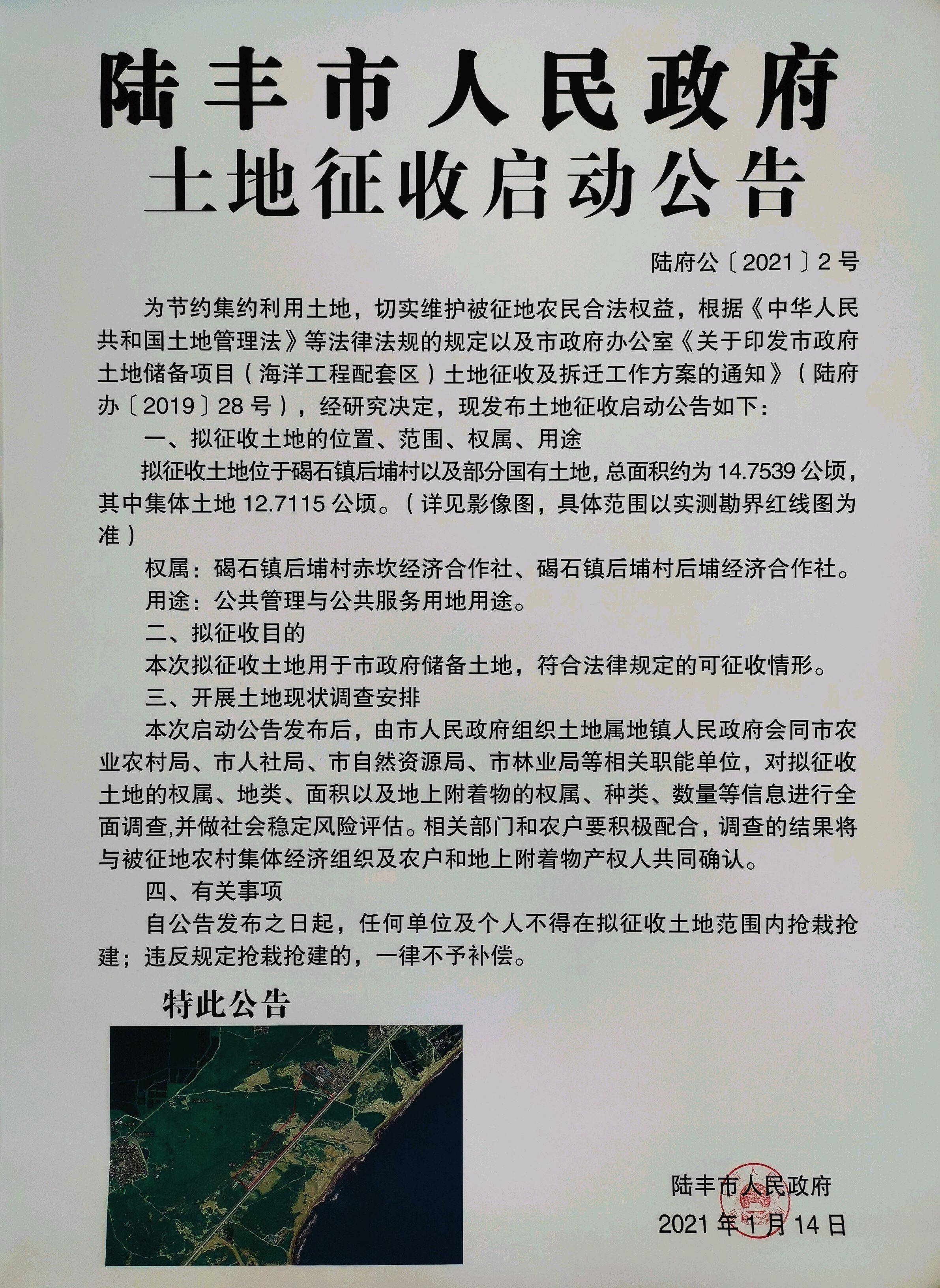 陸豐市人民政府土地征收啟動(dòng)公告(陸府公[2021]2號(hào))