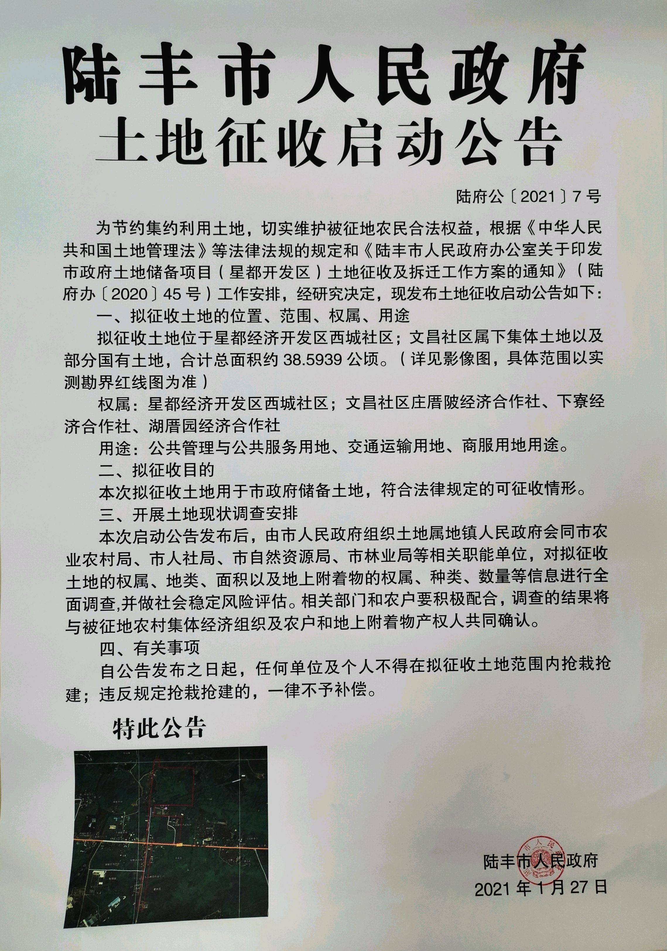 陸豐市人民政府土地征收啟動(dòng)公告(陸府公[2021]7號(hào))