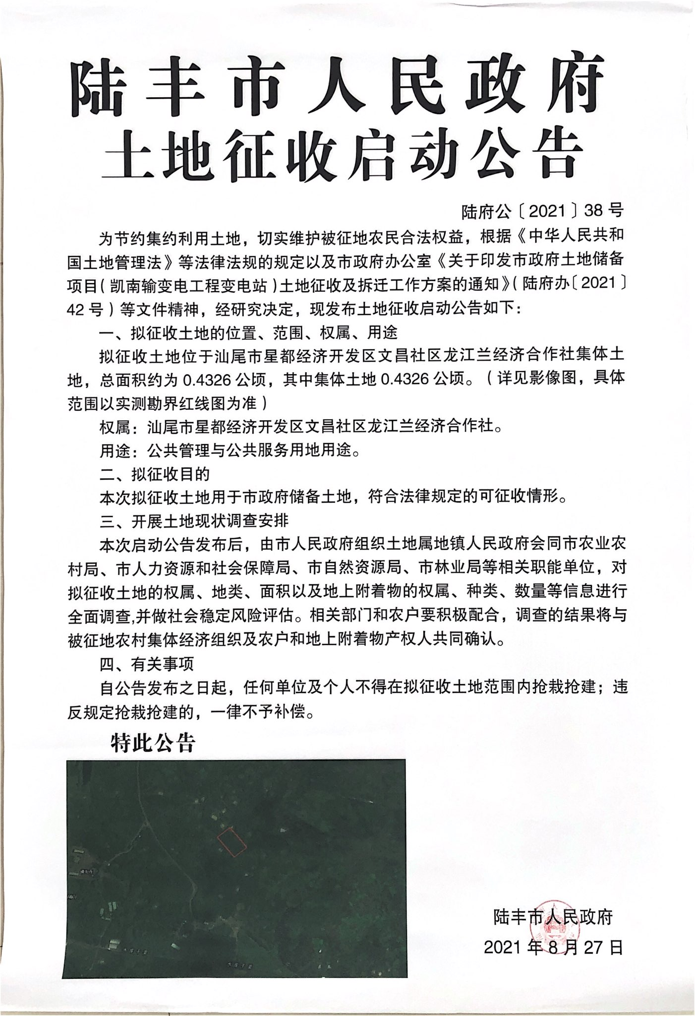 陸豐市人民政府土地征收啟動公告(陸府公[2021]38號)