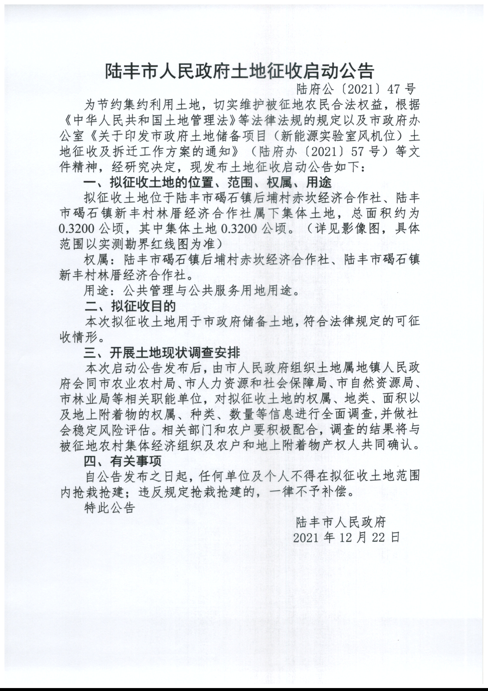 陸豐市人民政府土地征收啟動(dòng)公告(陸府公〔2021〕47號(hào) )