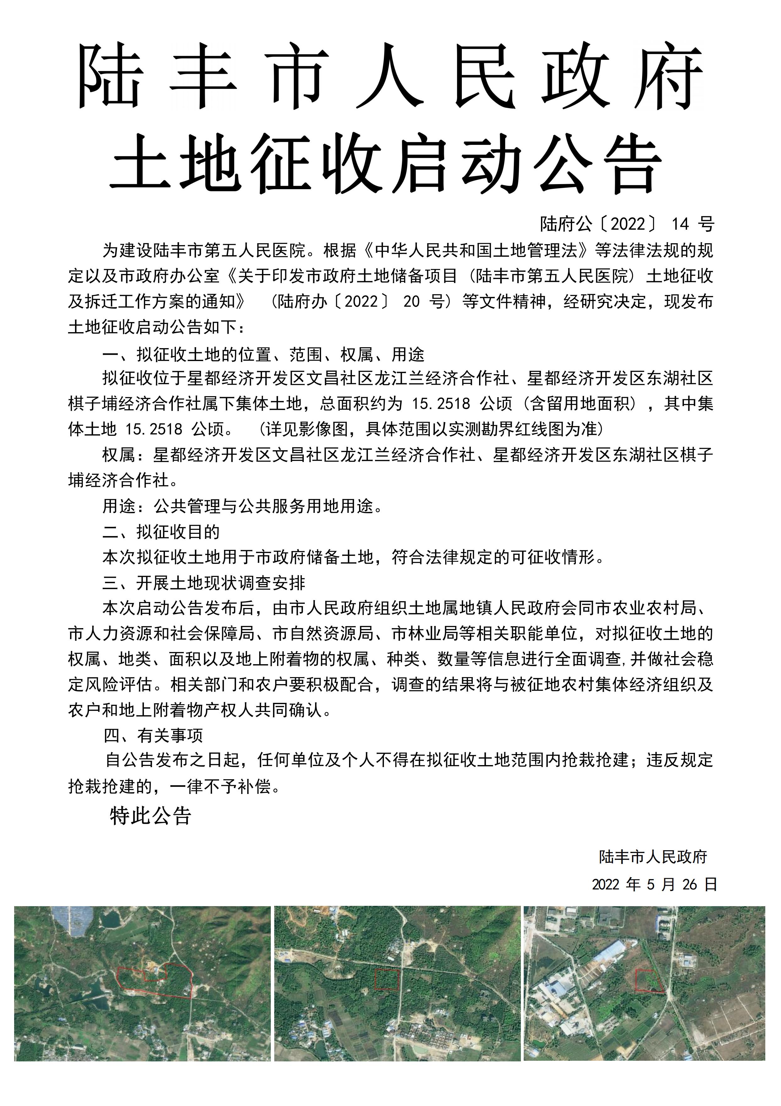 陸豐市人民政府土地征收啟動(dòng)公告(陸府公〔2022〕14號(hào))