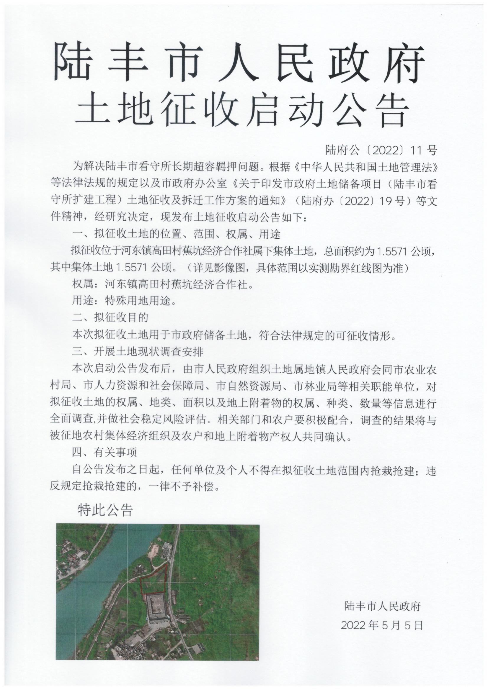 陸豐市人民政府土地征收啟動公告(陸府公[2022]11號)