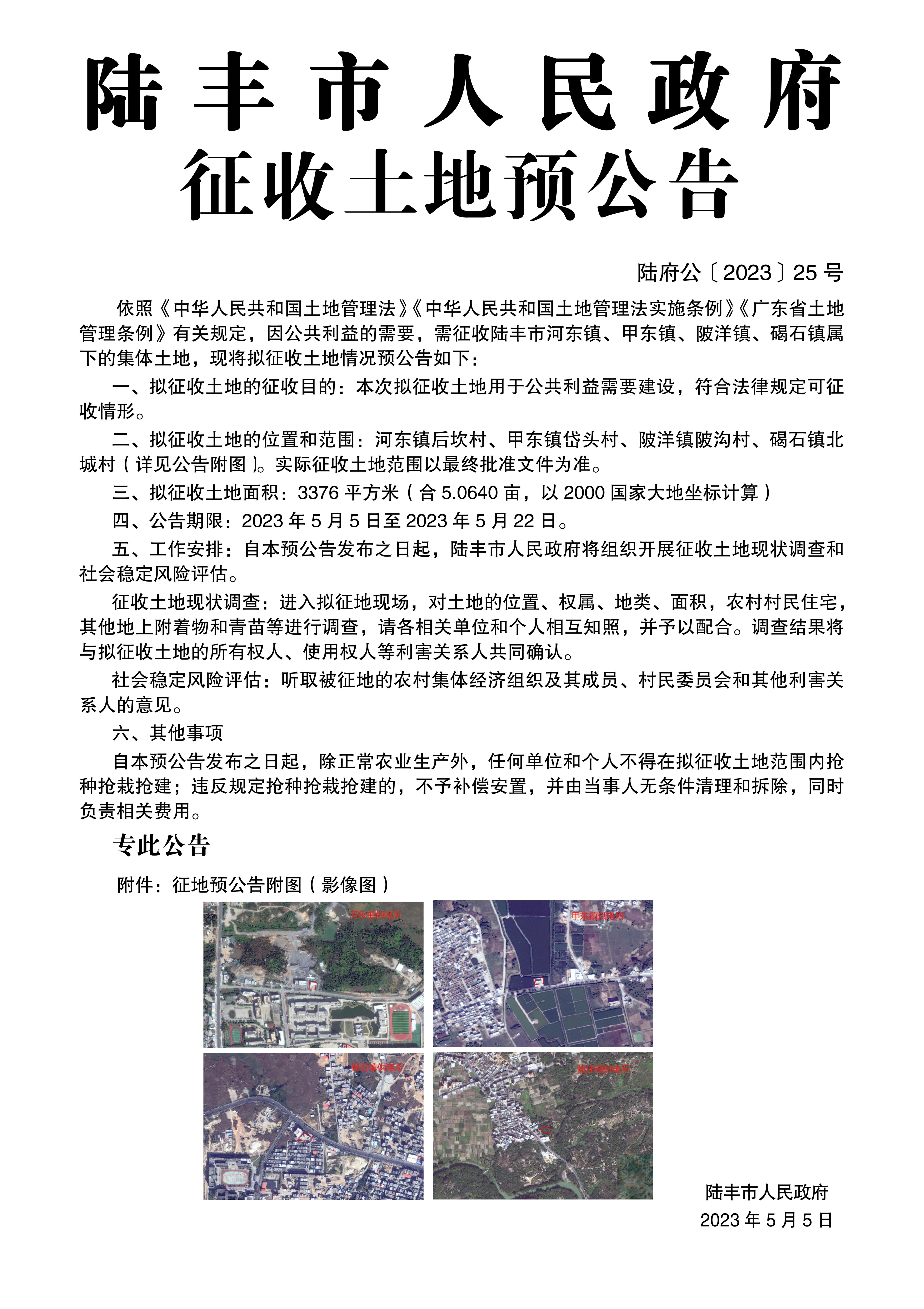 陸豐市人民政府征收土地預(yù)公告(陸府公〔2023〕25號(hào))