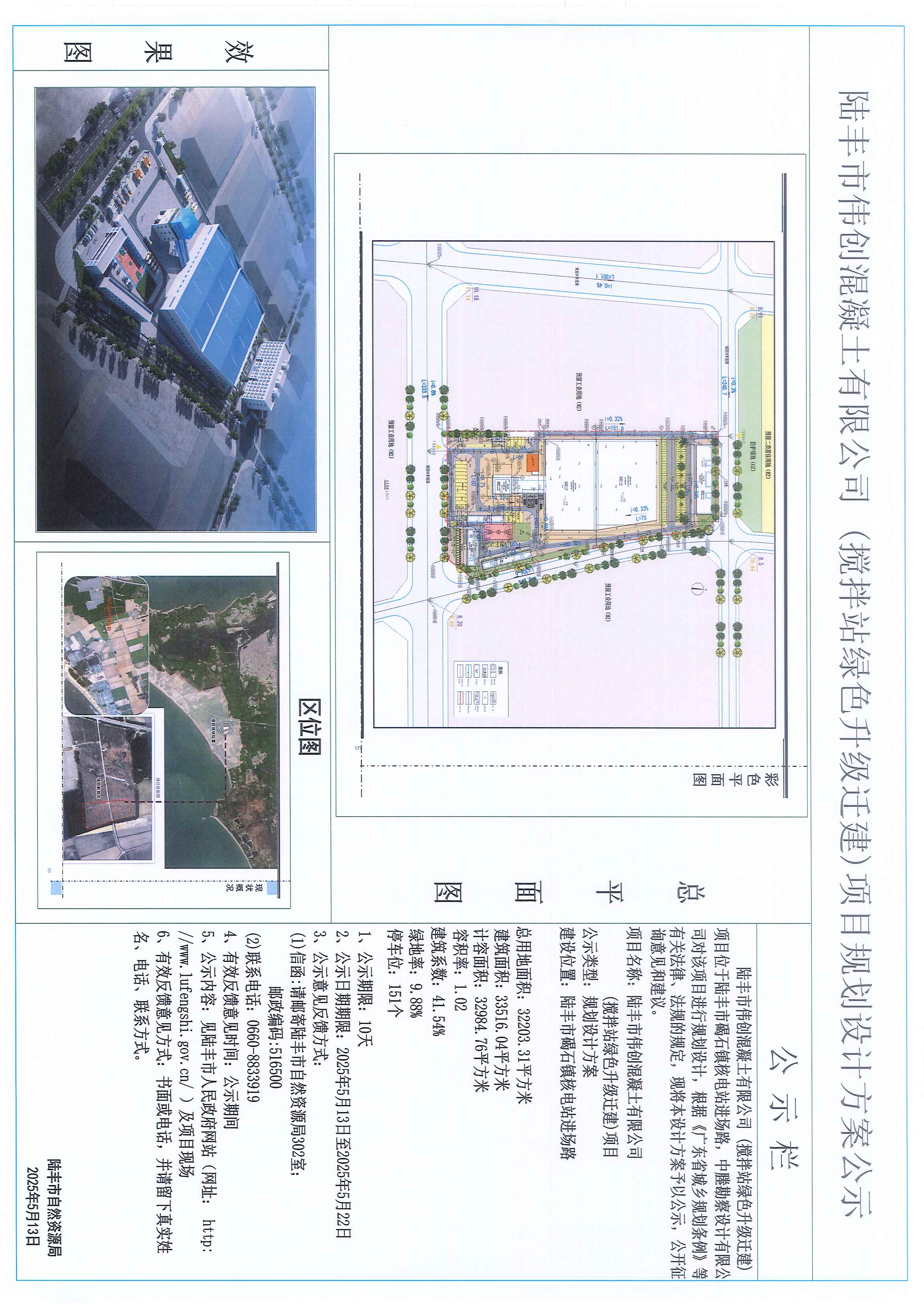 陸豐市偉創(chuàng)混凝土有限公司(攪拌站綠色升級遷建)項目規(guī)劃設(shè)計方案公示